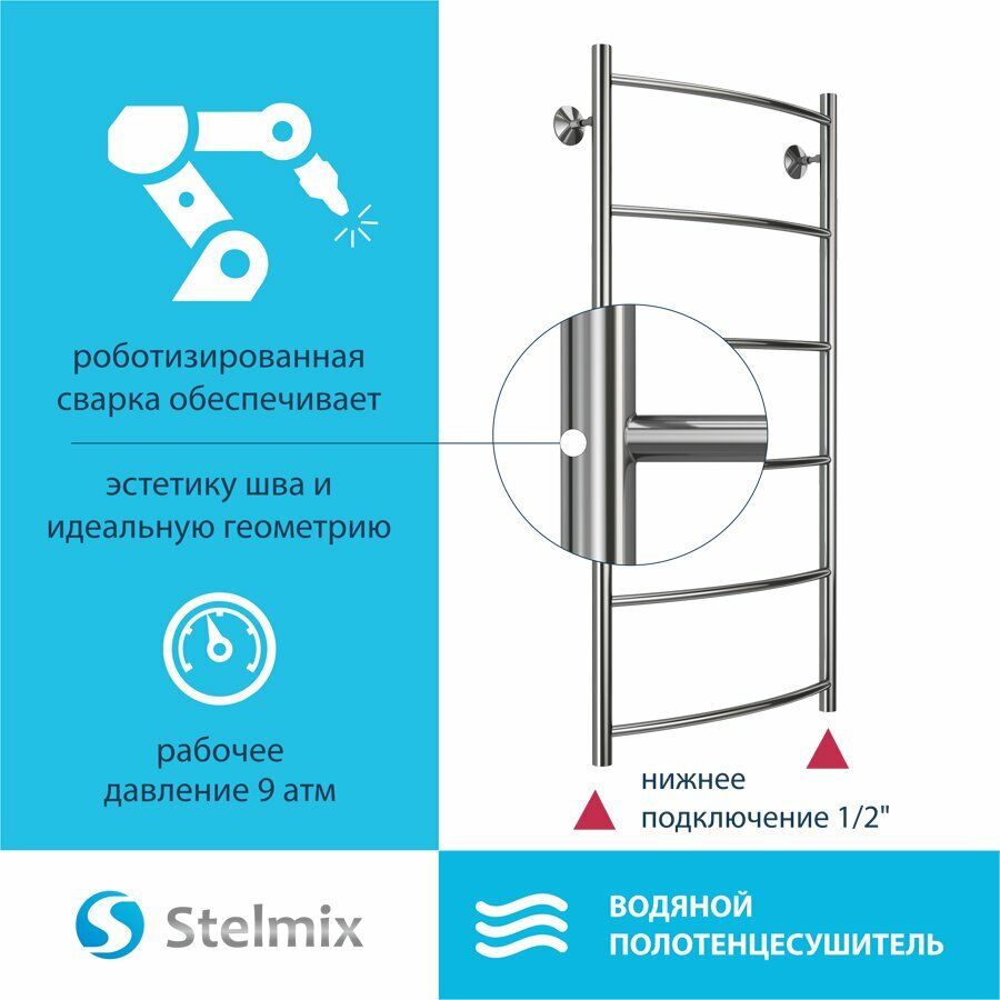 Полотенцесушитель водяной STELMIX (стелмикс) Дуга П5 500х800 мм, нижнее подключение, гарантия 5 лет
