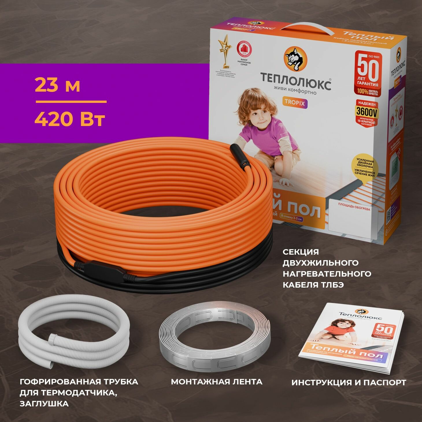 Кабель нагревательный Tropix ТЛБЭ 23.0м/420 Вт, Теплолюкс 100035718100 9 180 ₽