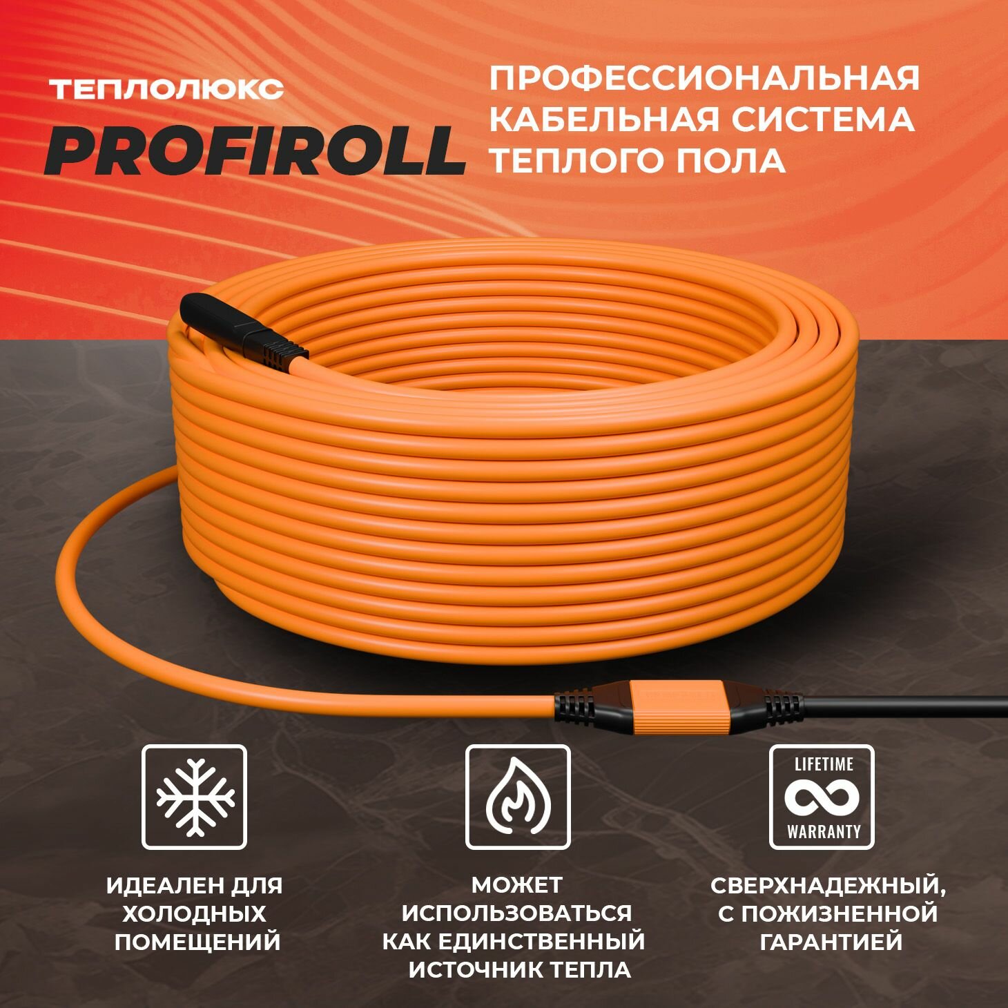 Греющий кабель, Теплолюкс, ProfiRoll 153м, 18 м2, длина кабеля 153 м