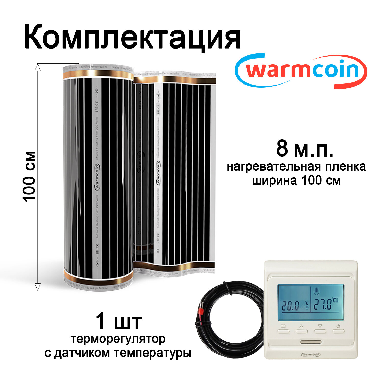 10 цен на Теплый пол Warmcoin инфракрасный 100 см, 220 Вт/м. кв. с электронным терморегулятором, 8 м. п