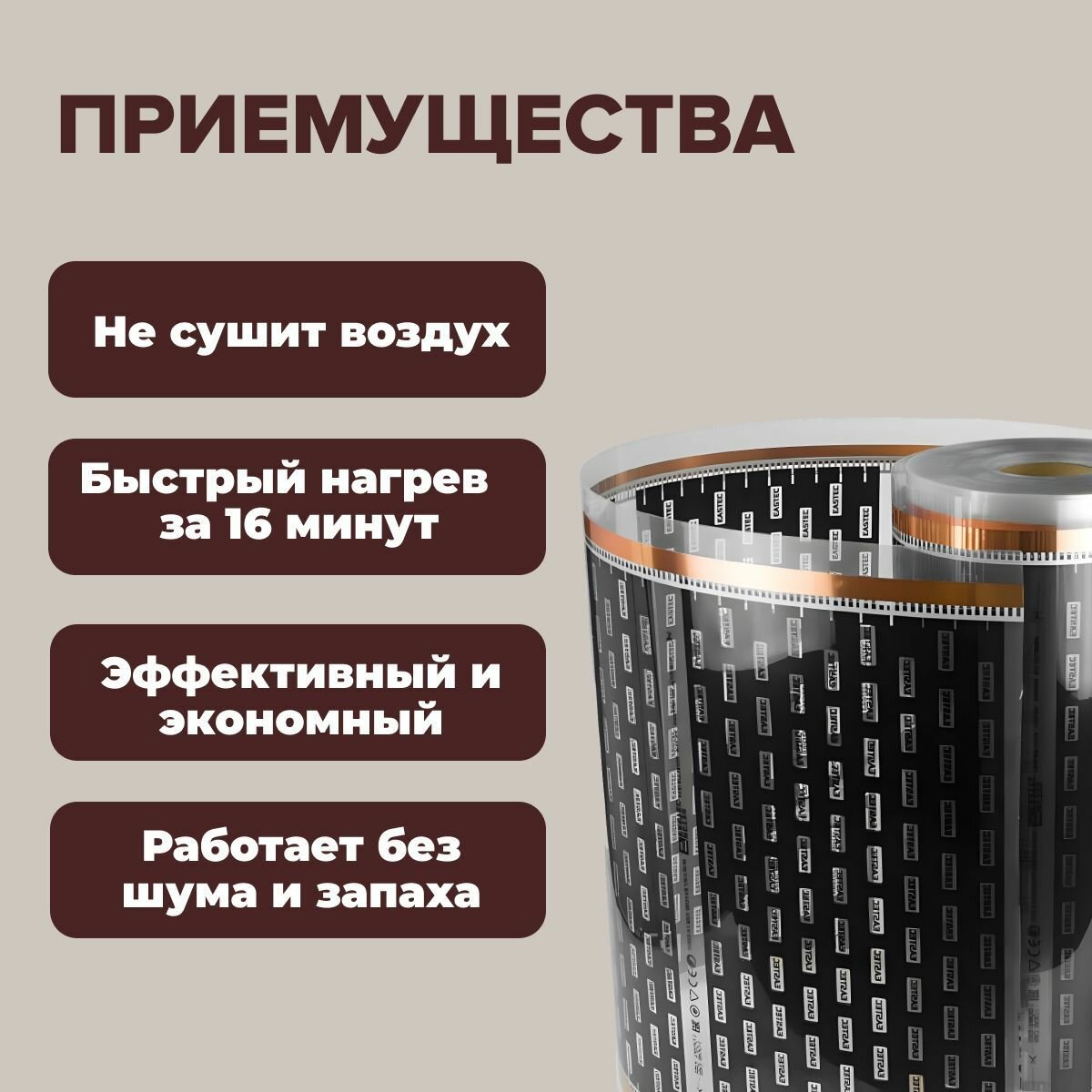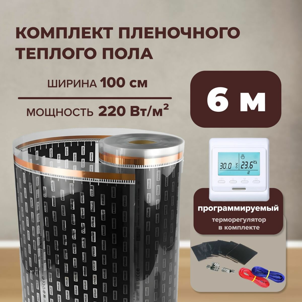Пленочный теплый пол 6 м. кв. EASTEC ширина 100см с электронным терморегулятором информация: