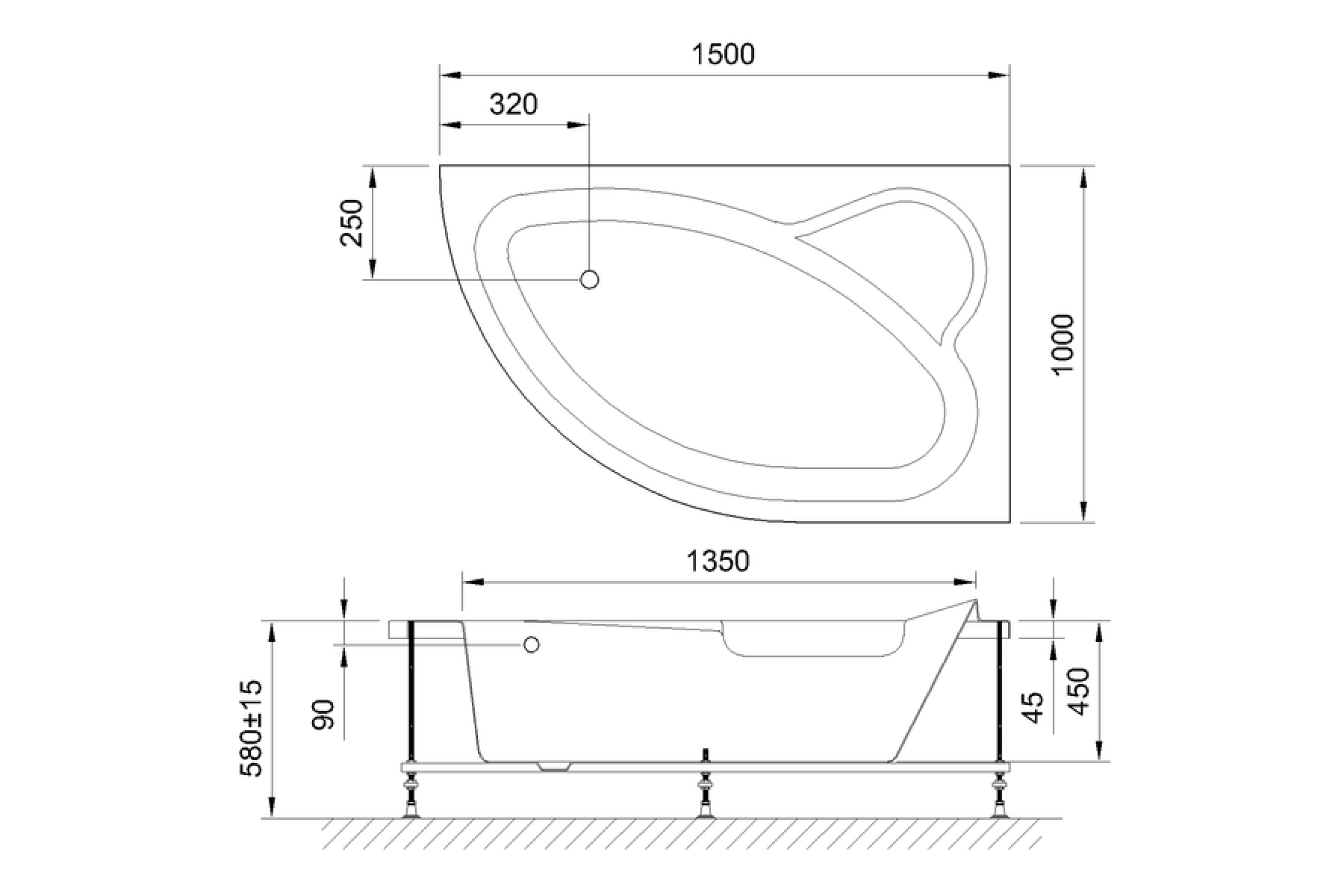 Гидромассажная ванна ALPINE STANDART 150x100x58 L 82 000 ₽