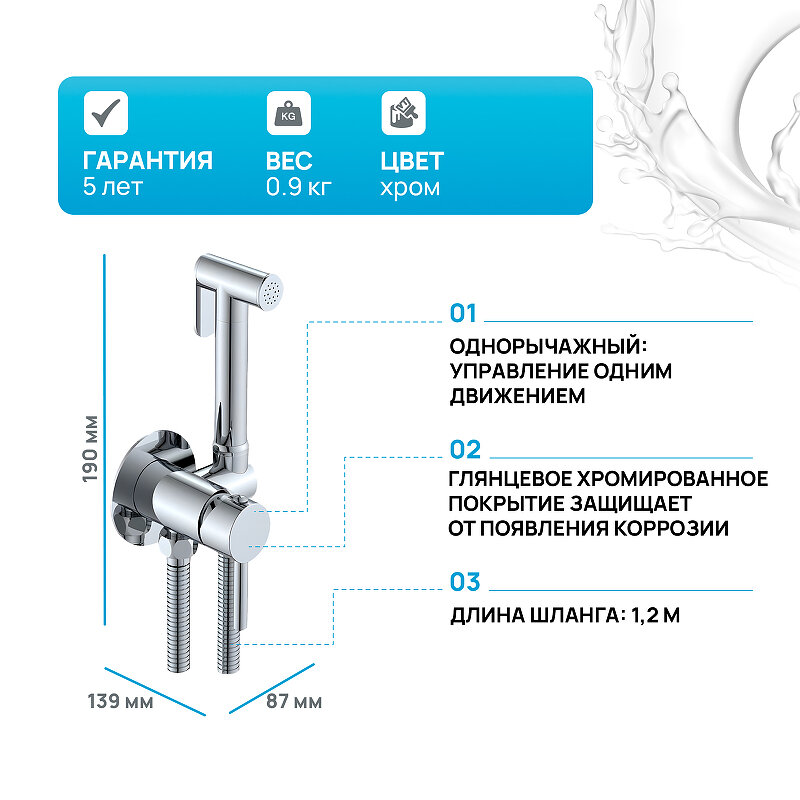 | Комплектация | гигиенический душ / держатель лейки / лейка / ручной душ / Смеситель / шланг |