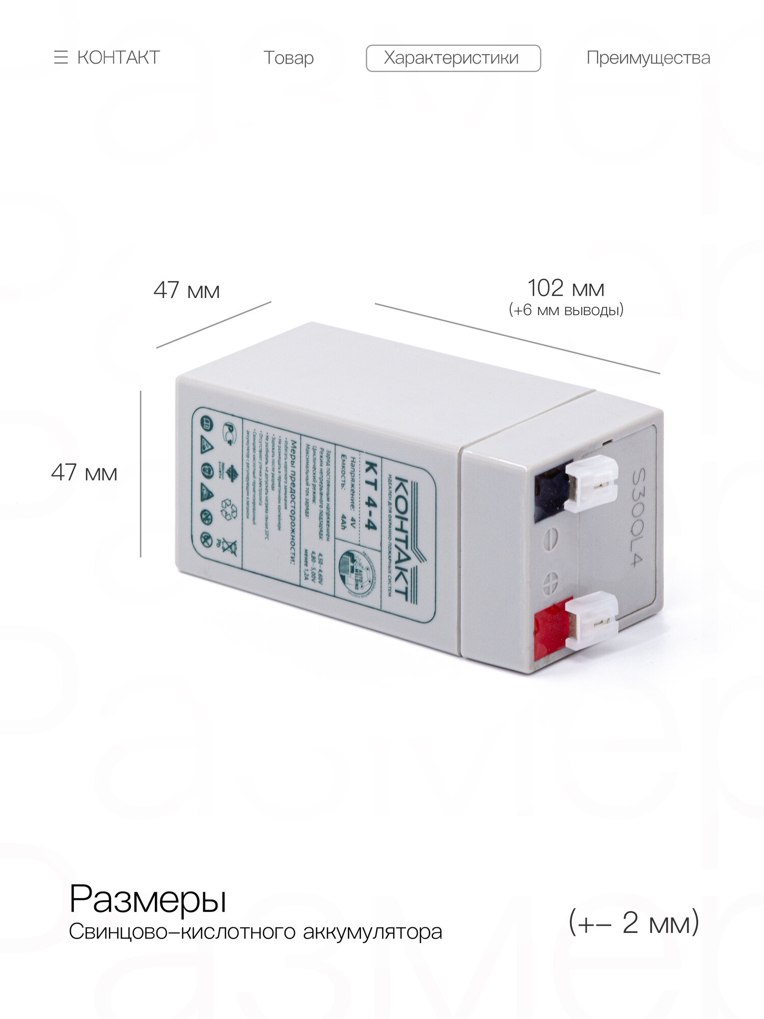 Свинцово-кислотный аккумулятор КОНТАКТ КТ 4-4 (4 В, 4 Ач) для ИБП информация: