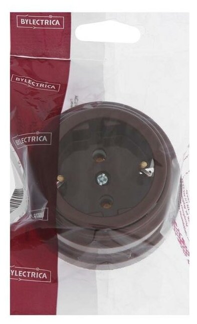 Розетка BYLECTRICA Ретро РА16-0202, 16А, одномест, наруж, с з/к, без крышки, IP20, корич. информация: