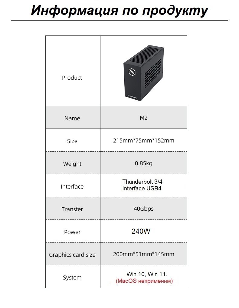 Внешний корпус для видеокарты Wikingoo M2-215-240W. EGPU. информация: