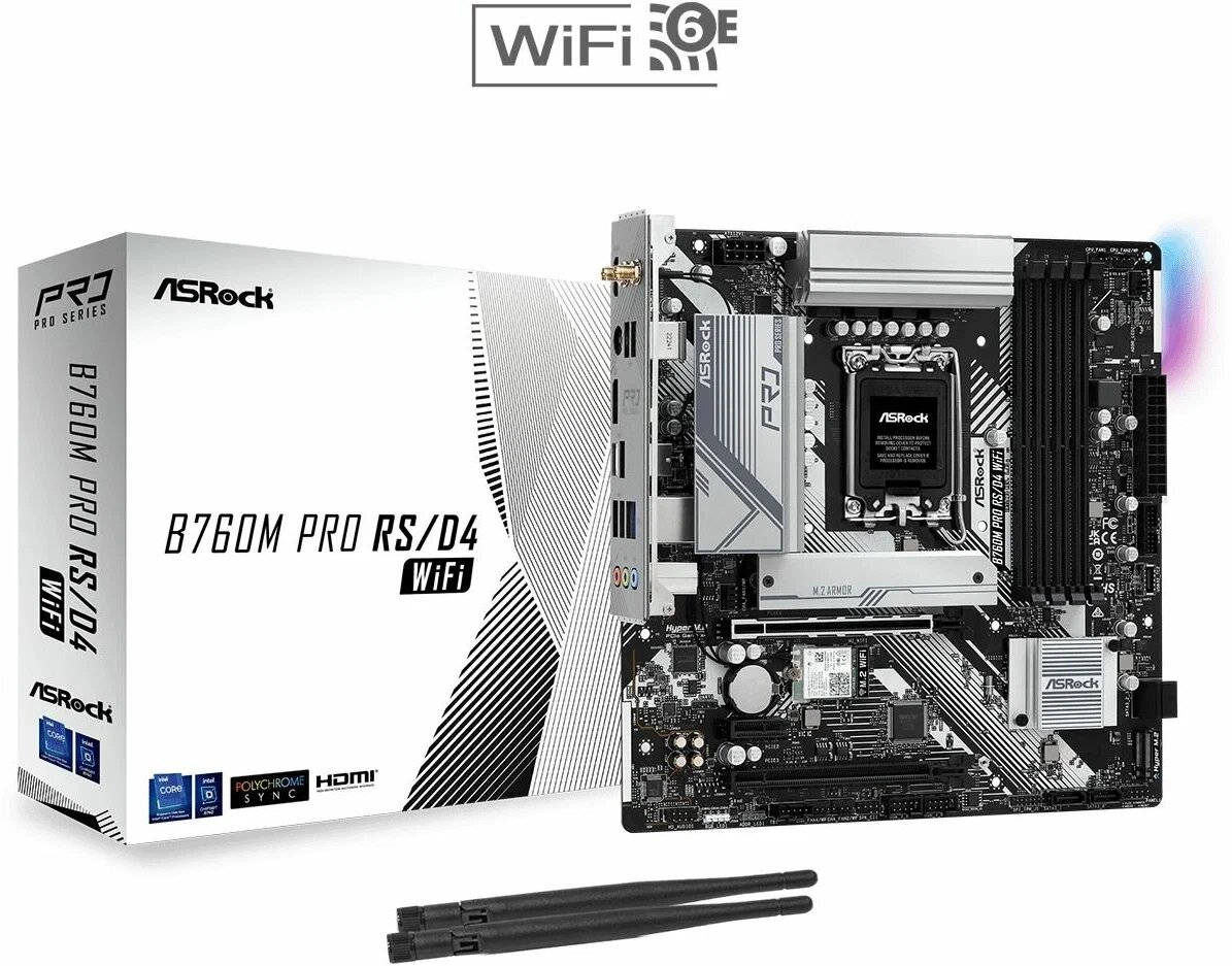 10 цен на Материнская плата ASRock B760M PRO RS/D4 WIFI Retail LGA1700, Intel B760, 4xDDR4-3200, HDMI/DP