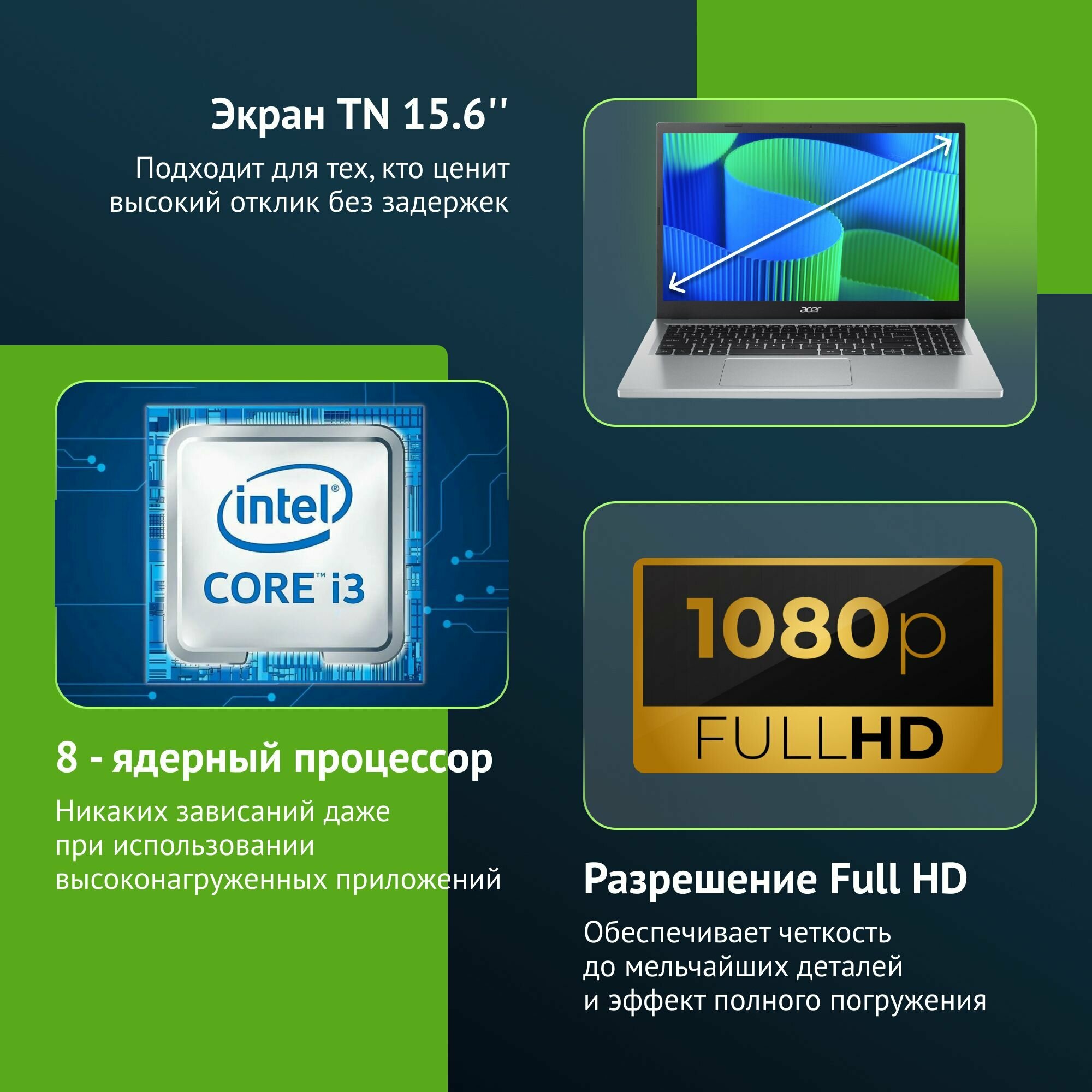 Отзывы на Ноутбук Acer Extensa 15 EX215-34-33AF i3 N305/16Gb/SSD512Gb/15.6"/TN/FHD/noOS/silver
