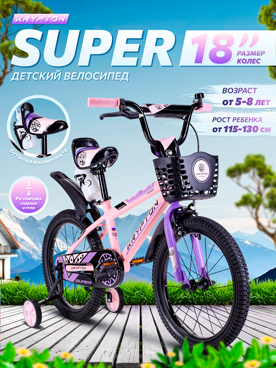 Отзывы на Велосипед детский двухколесный 18" Krypton Super lilac pink / на 5-8 лет, рост 115-130 см