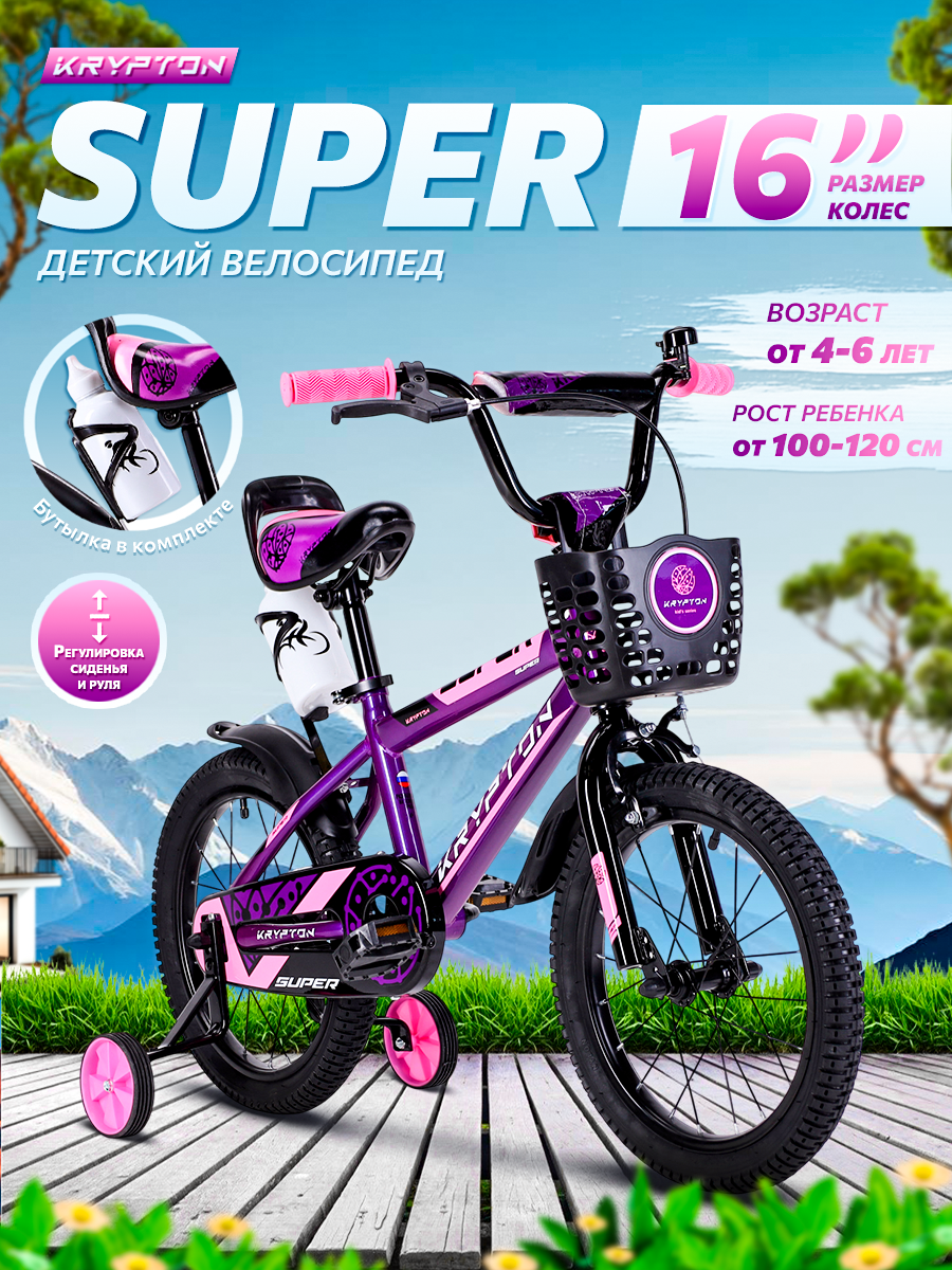 Велосипед детский двухколесный 16" Krypton Super purple pink / на 4-6 лет, рост 100-120 см информация: