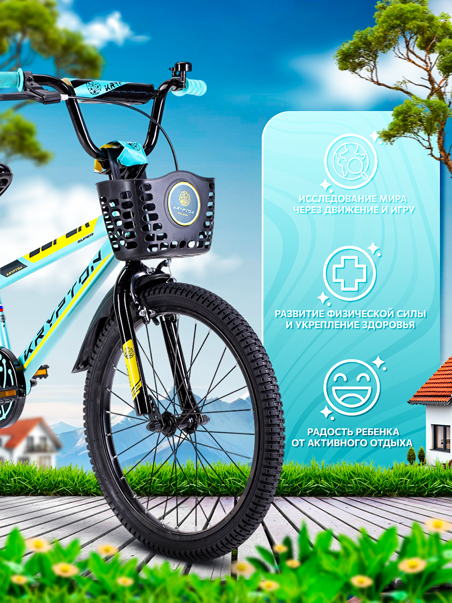 Отзывы на Велосипед детский двухколесный 20" Krypton Super sky blue yellow / на 6-9 лет, рост 115-140 см