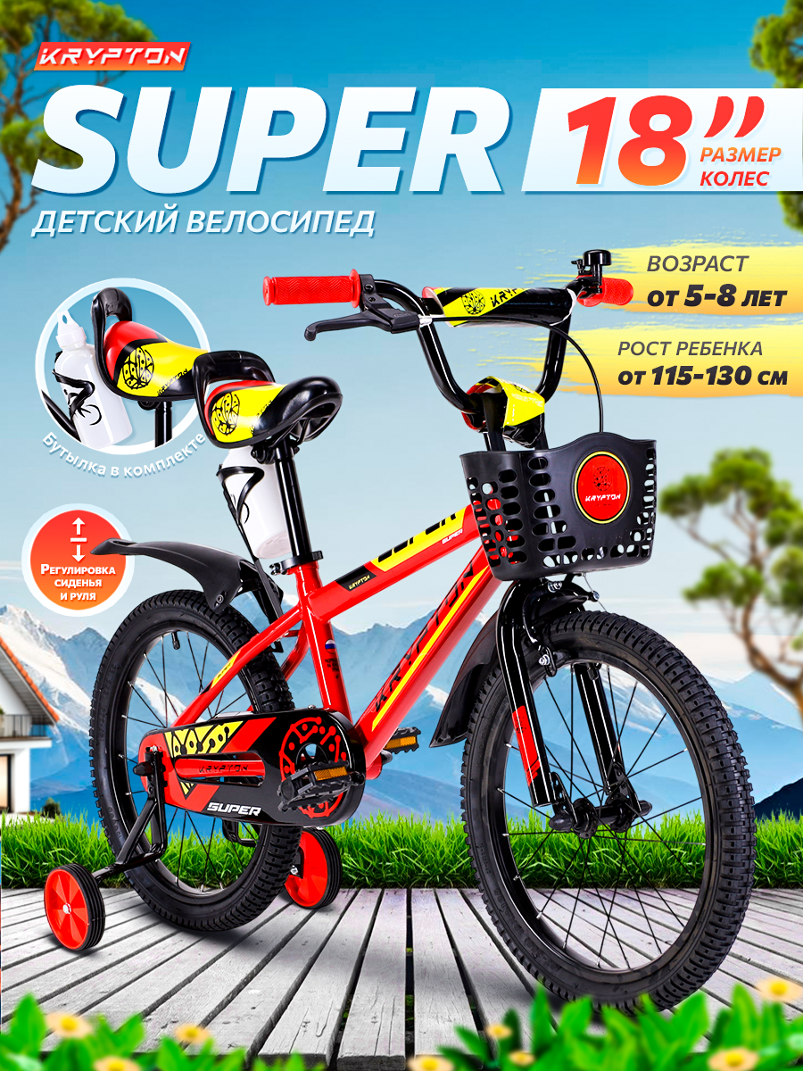 Отзывы на Велосипед детский двухколесный 18" Krypton Super red yellow / на 5-8 лет, рост 115-130 см