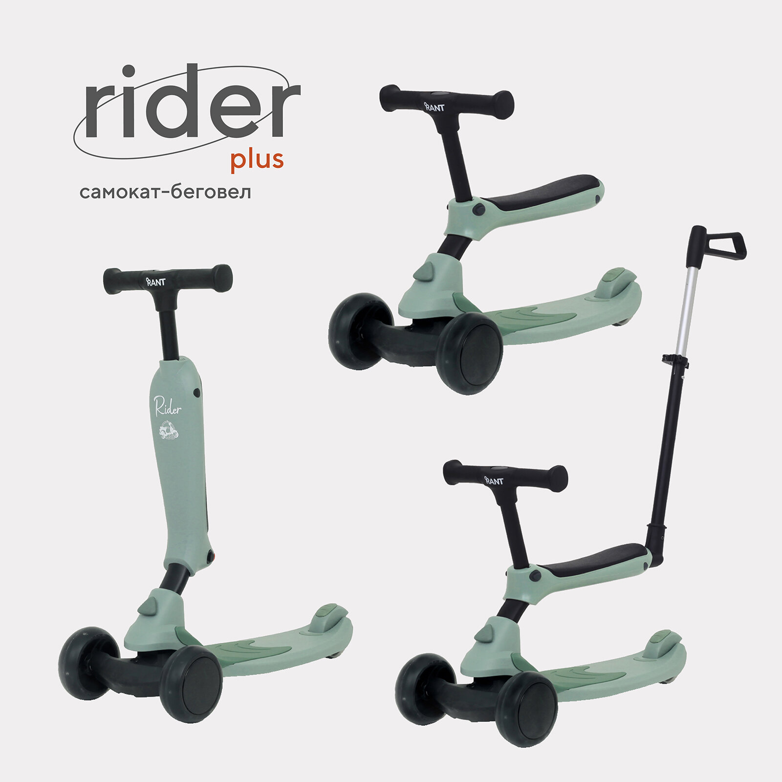 Беговел-самокат Rider Plus RB100 со светящимися колесами, зеленый информация: