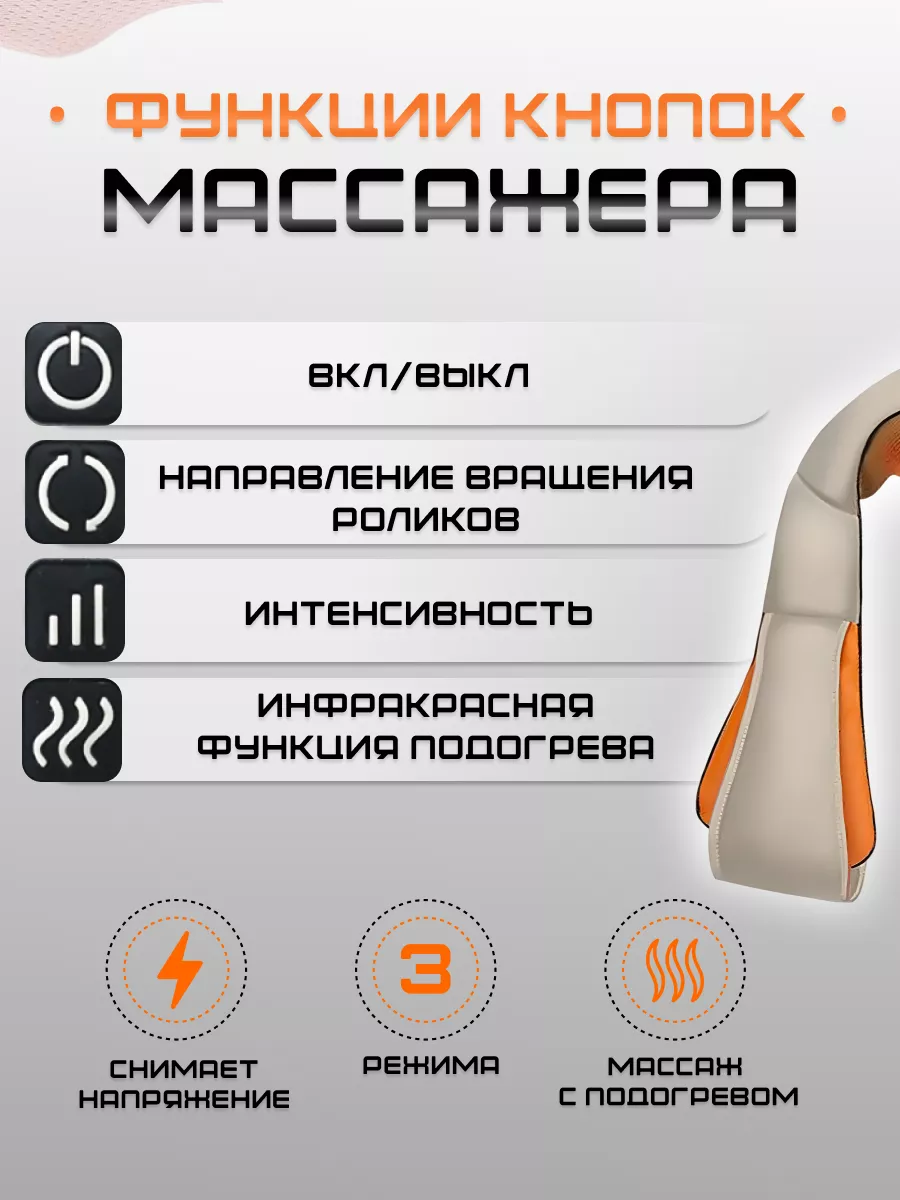 | Зона массажа | бедра / живот / ноги / стопы / талия / шея |