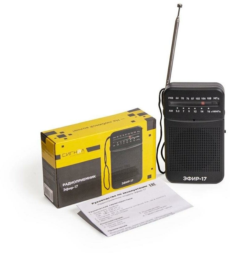ЭФИР-17 УКВ 64-108МГц, СВ 530-1600КГц, КВ, бат. 2*AA информация: