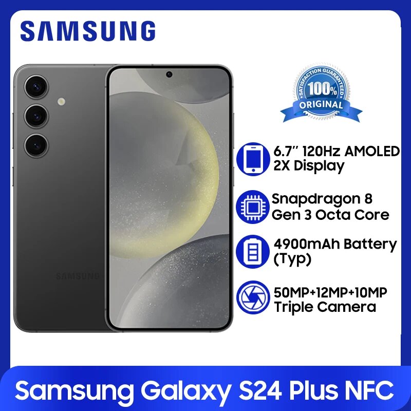 Смартфон Samsung Galaxy S24 Plus 5G NFC Snapdragon 8 Gen 3 6,7 дюйма AMOLED Scrren 3120 x 1440P 50MP OIS, Add Nillkin Case, Samsung, galaxy s24+, Смартфон, Черный, 12ГБ, 256ГБ, china, новый, 01.01.2024