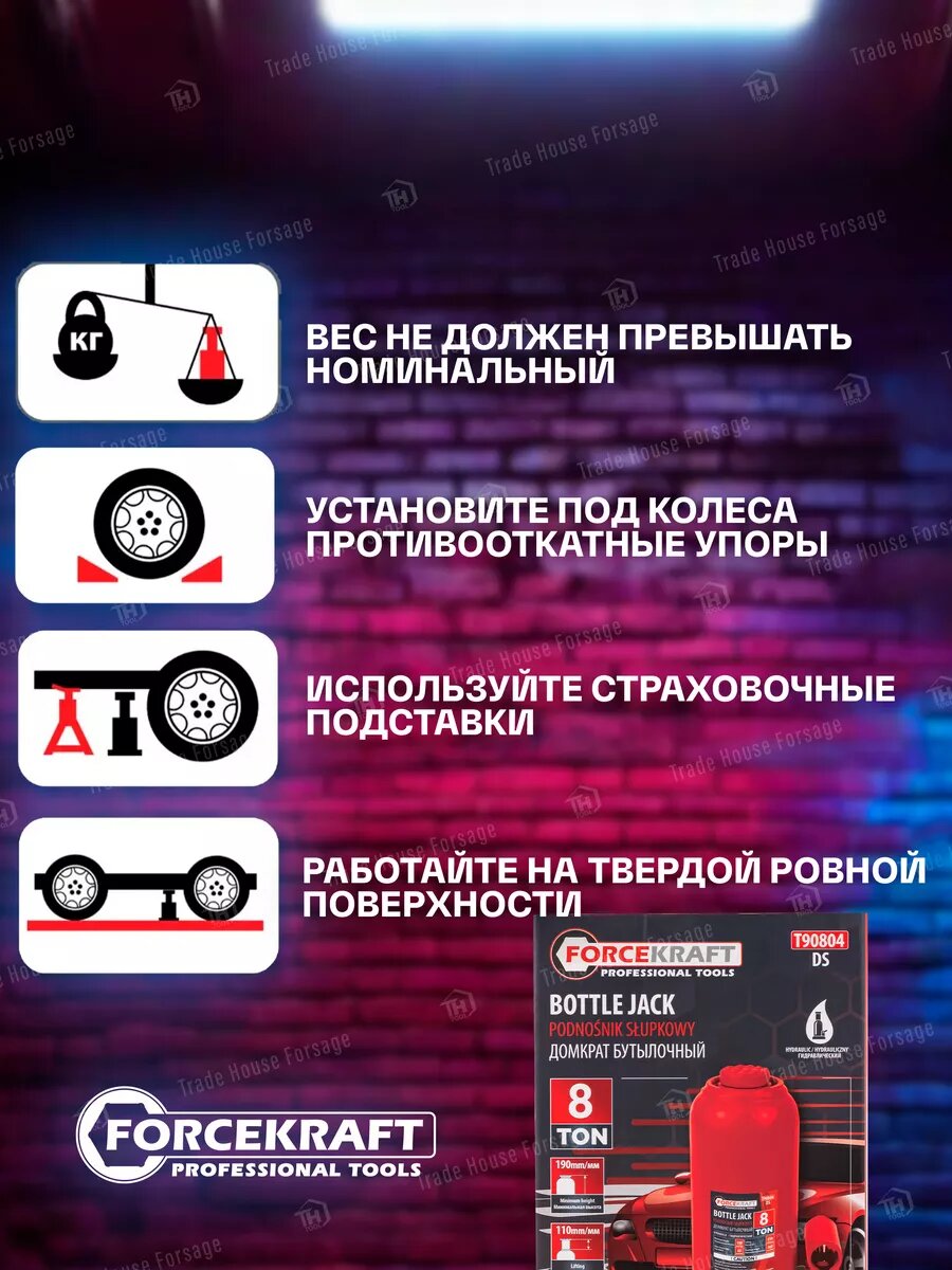 Домкрат гидравлический бутылочный, 8т ForceKraft 1 725 ₽