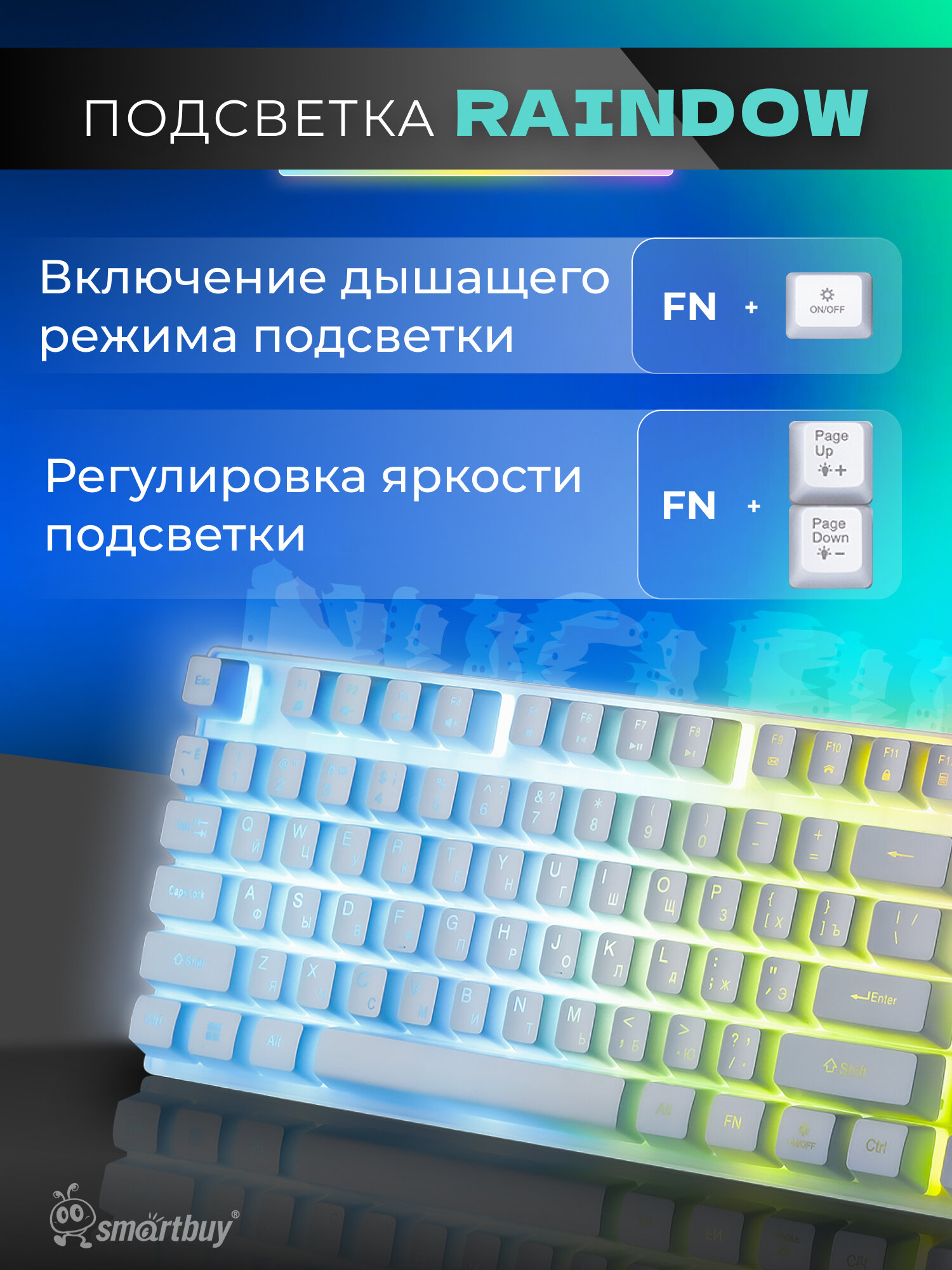 Клавиатура игровая проводная мультимедийная Smartbuy RUSH Nucleus USB, белая информация: