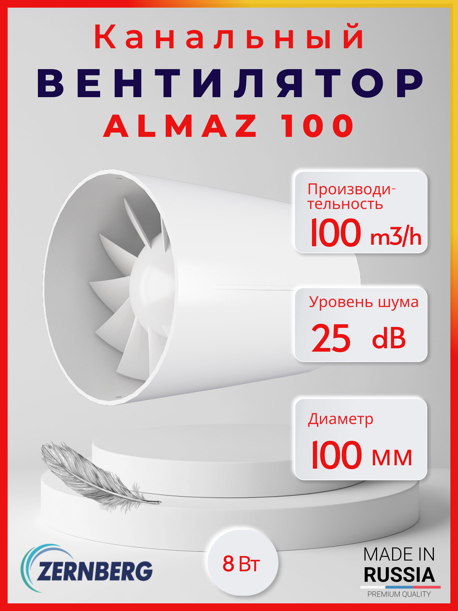 Вентилятор вытяжной канальный 100мм Zernberg Almaz 100, 100 м³/ч, низкий уровень шума 25 ДбА для ванны и кухни информация: