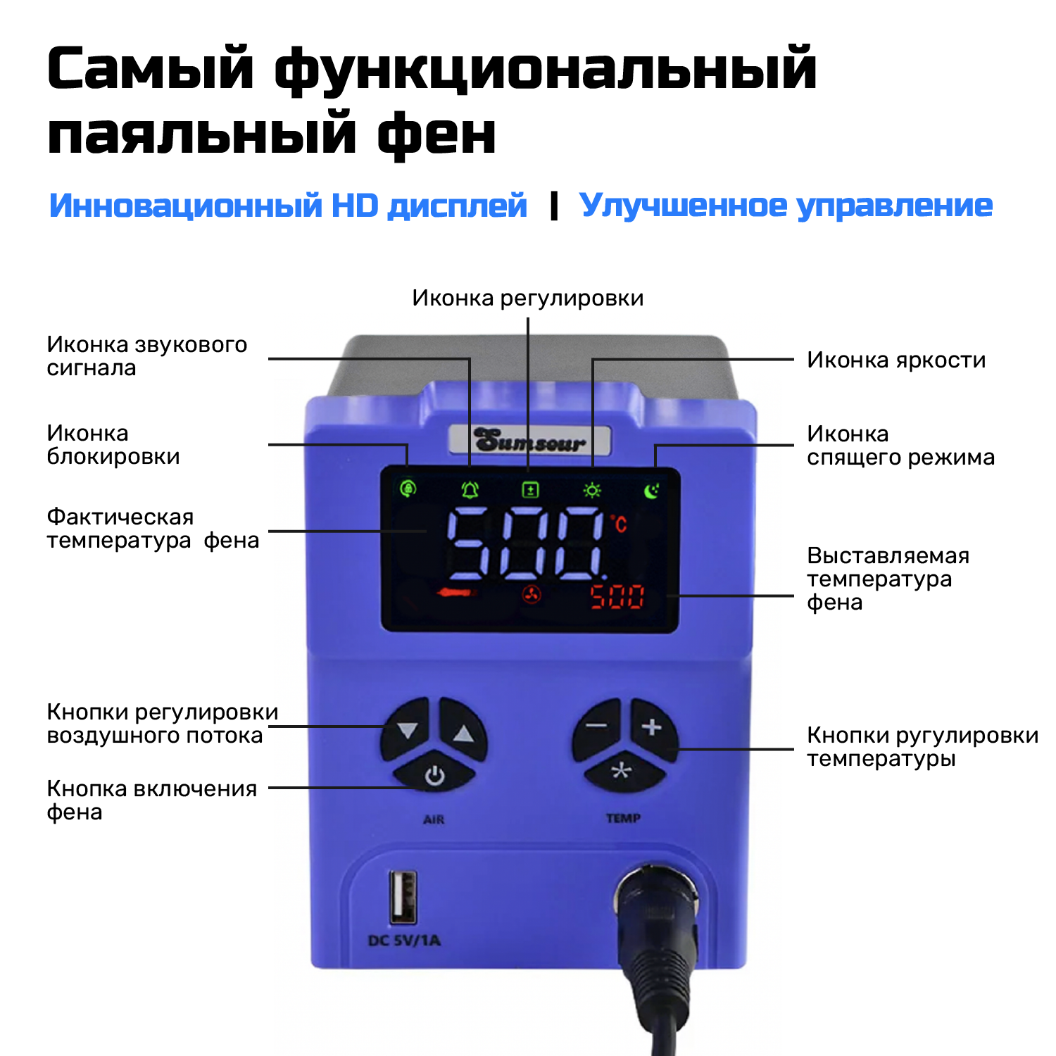 Паяльная станция с феном Sumsour 868D, паяльный фен с насадками, 700 Вт информация: