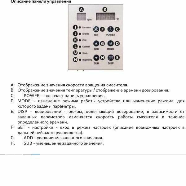 | Дополнительная информация | 4 режима работы: мороженое (-6°C), фруктовый лед (-3°C), охлаждение (+5...+6°C), коктейли (-6°C) |