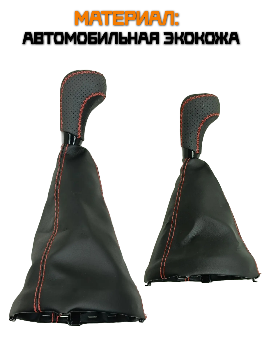 Кожух рычага КПП, экокожа с красной строчкой на ВАЗ 2113, 2114, 2115
