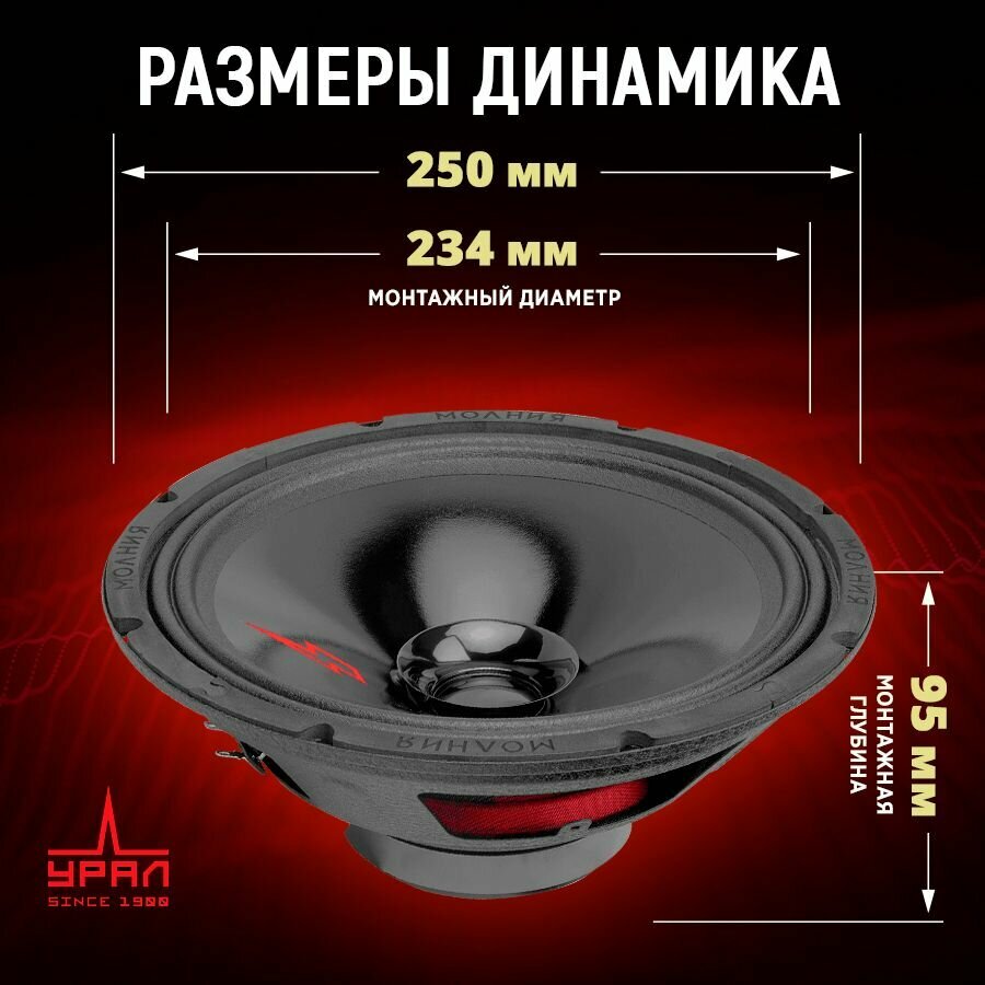 Акустика широкополосная УРАЛ МОЛНИЯ АС-МЛ250, 10", 150/300 Вт информация: