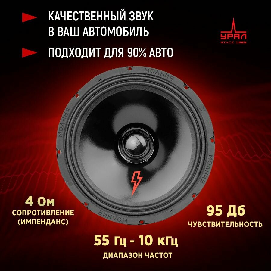 Автомобильная акустика URAL АС-МЛ 250 молния 10", 300 Вт, черный 4 310 ₽