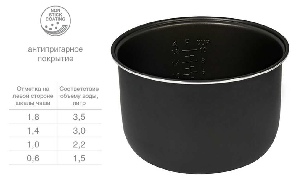 | Особенности | антипригарное покрытие чаши, регулировка времени приготовления, регулировка температуры |
