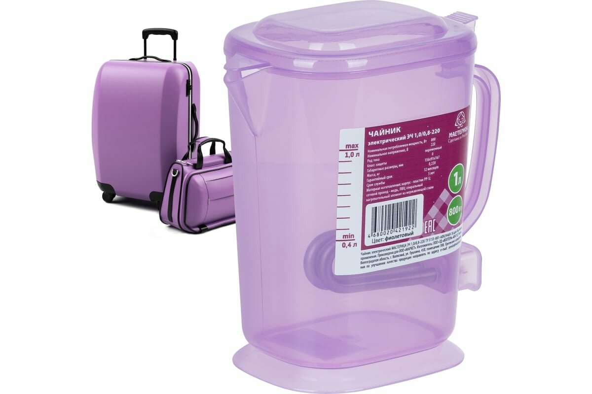 Мастерица Чайник электрический эч-1,0/0,8-220 1л, пластик, сиреневый прозрачный ЭЧ-1,0/0,8-220 сиреневый прозрачный информация: