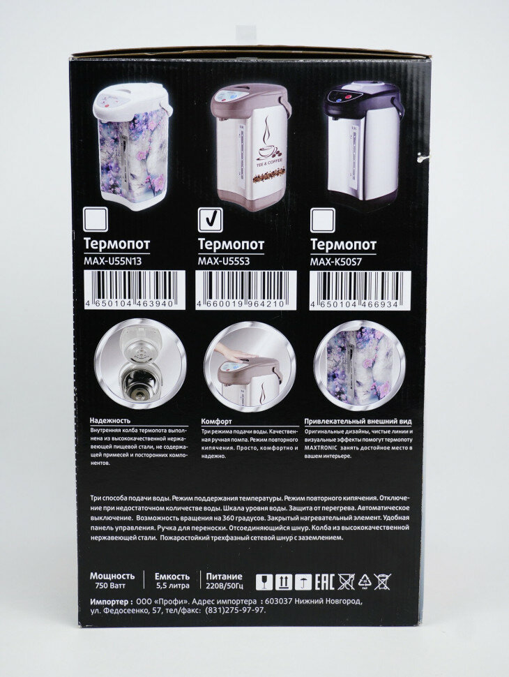 Отзывы на MAXTRONIC MAX-U55S3, Термопот/чайник-термос, 5,5л, 750Вт, металл