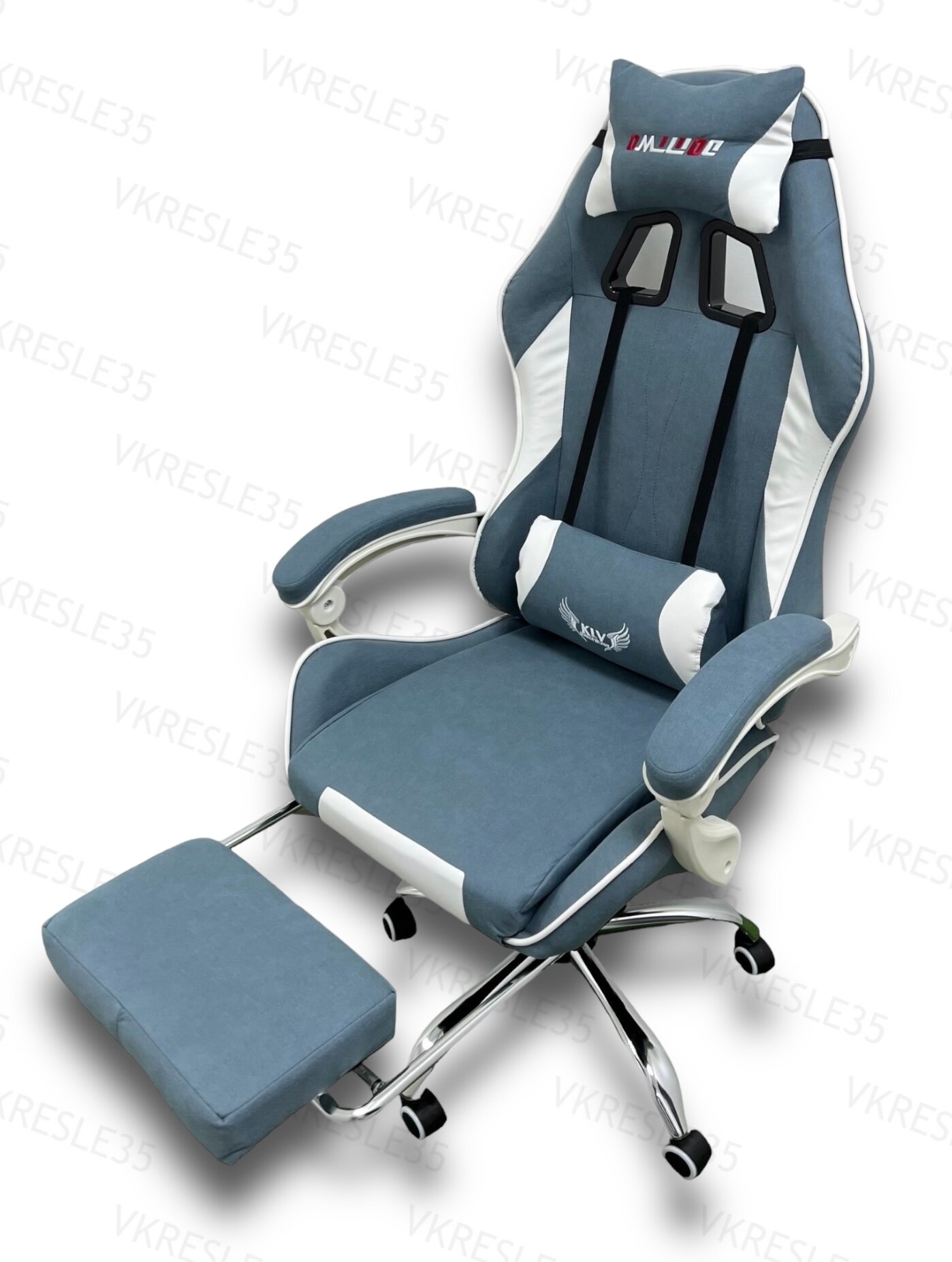 Игровое Компьютерное Кресло, Цвет Синий, Тканевое с Подставкой для ног информация: