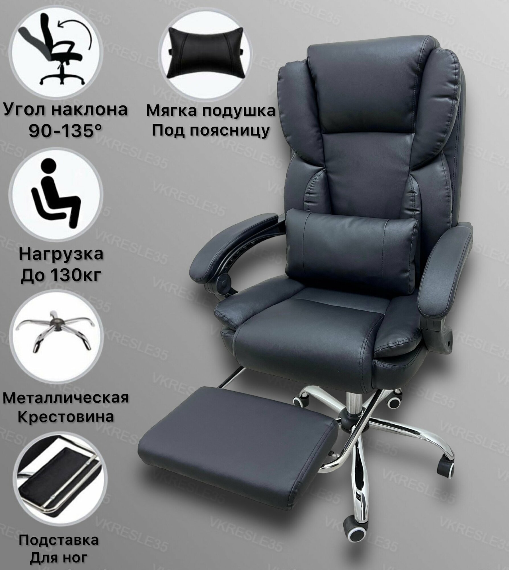 Компьютерное кресло - Кресло Руководителя, с Подставкой для ног, цвет Черный информация: