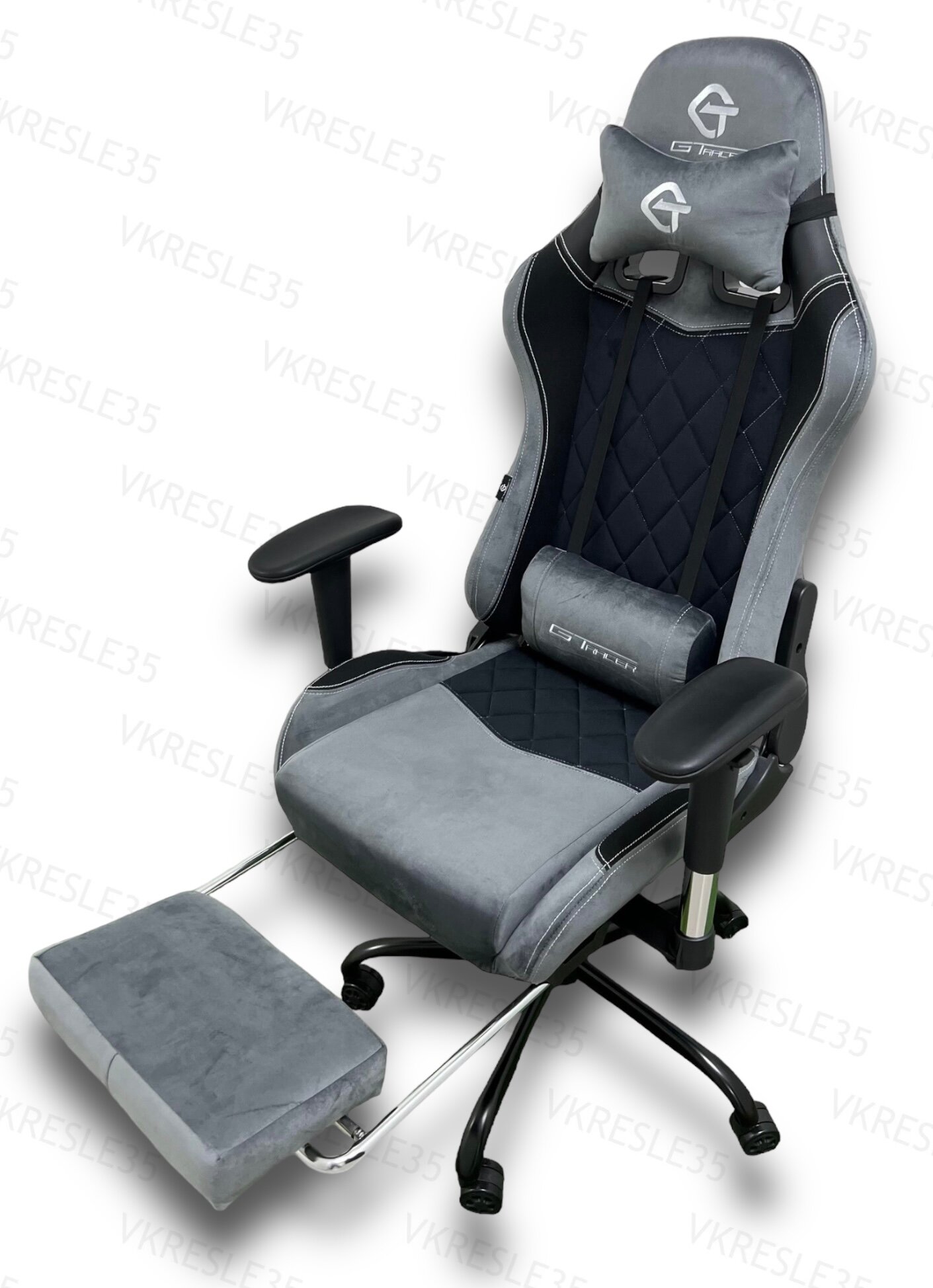 Отзывы на Игровое Компьютерное Кресло, Черно-Серый, Велюр, с подставкой для ног