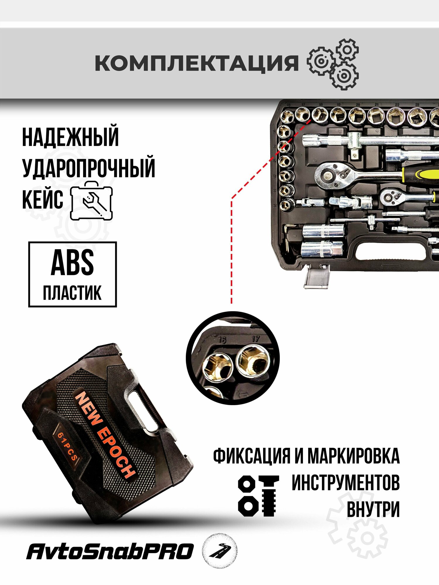 Набор инструментов NEW EPOCH, для авто, 61 предмет, в кейсе, 39 см x 34 см информация: