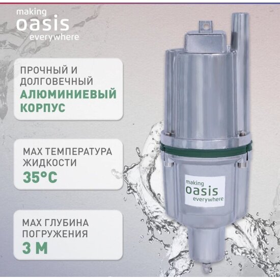 Насос погружной вибрационный making Oasis everywhere VN 0,42/70-25N, нижний забор, 300 Вт, 25 л/мин, напор 70 м, водяной, для колодца 2 660 ₽
