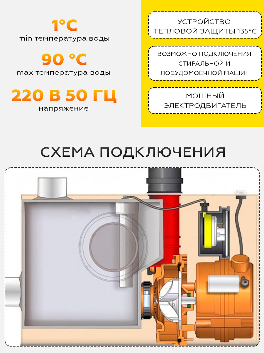 | Назначение канализационной станции | для биде, для душа, для кухонной мойки, для посудомоечной машины, для раковины, для стиральной машины, для унитаза |
