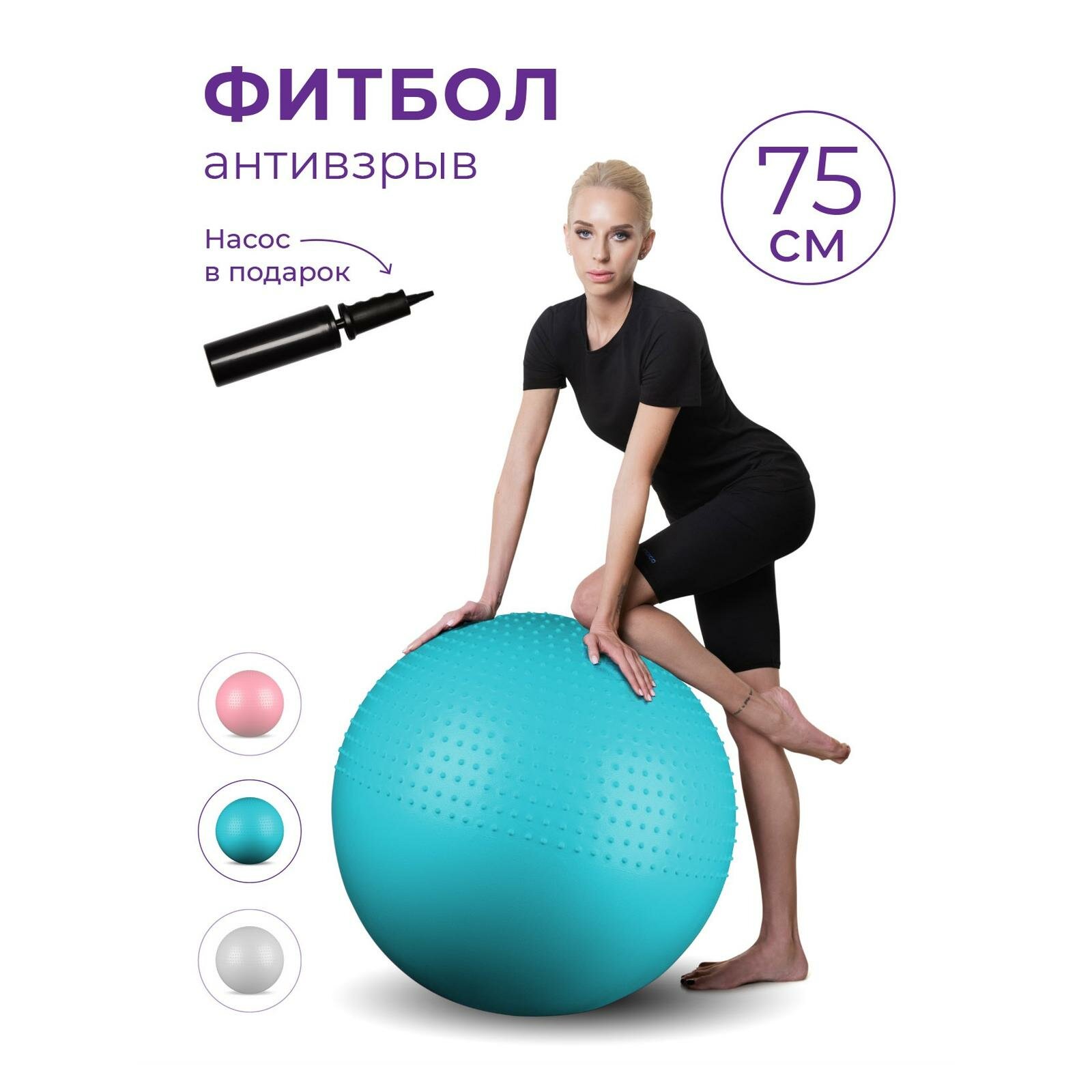 Отзывы на Мяч гимнастический массажный 2 в 1 IN003 INDIGO Anti-burst с насосом Бирюзовый 75см