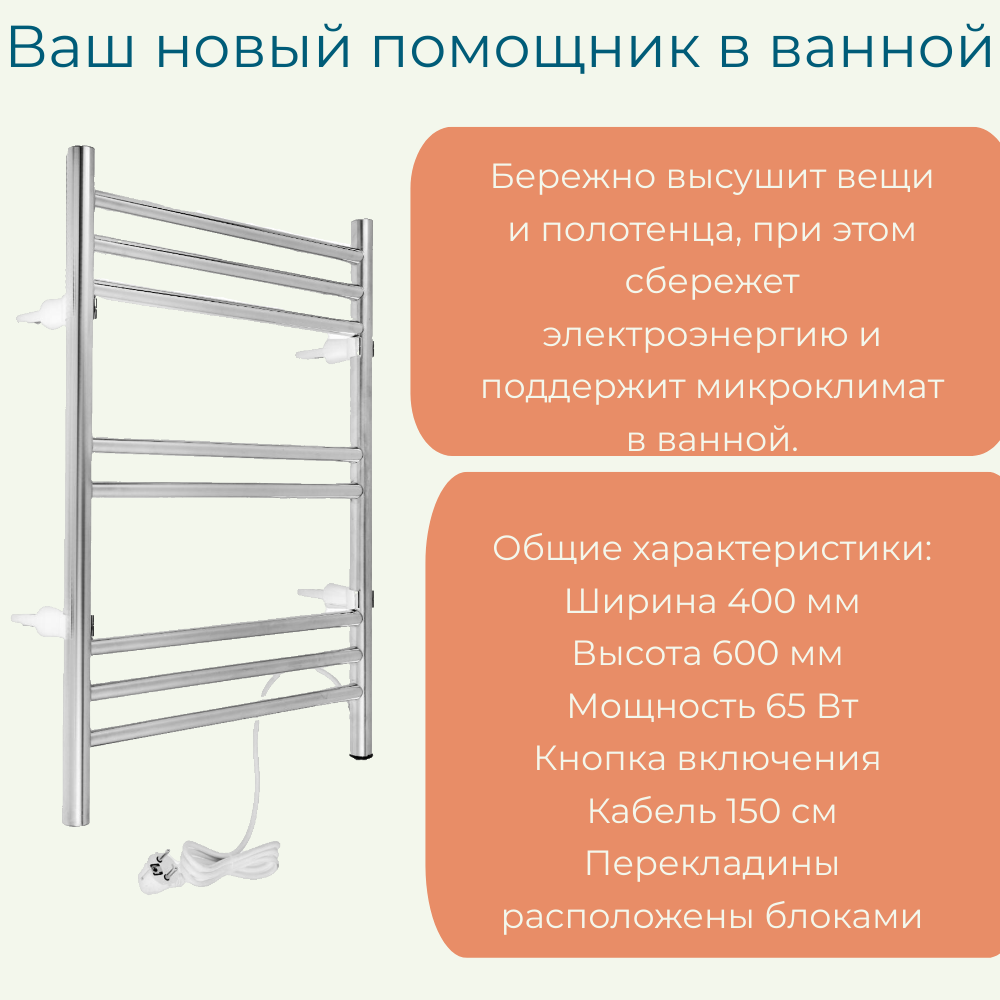Полотенцесушитель ТЕРА "Богема", нержавеющая сталь, 40x60 см, автоотключение информация: