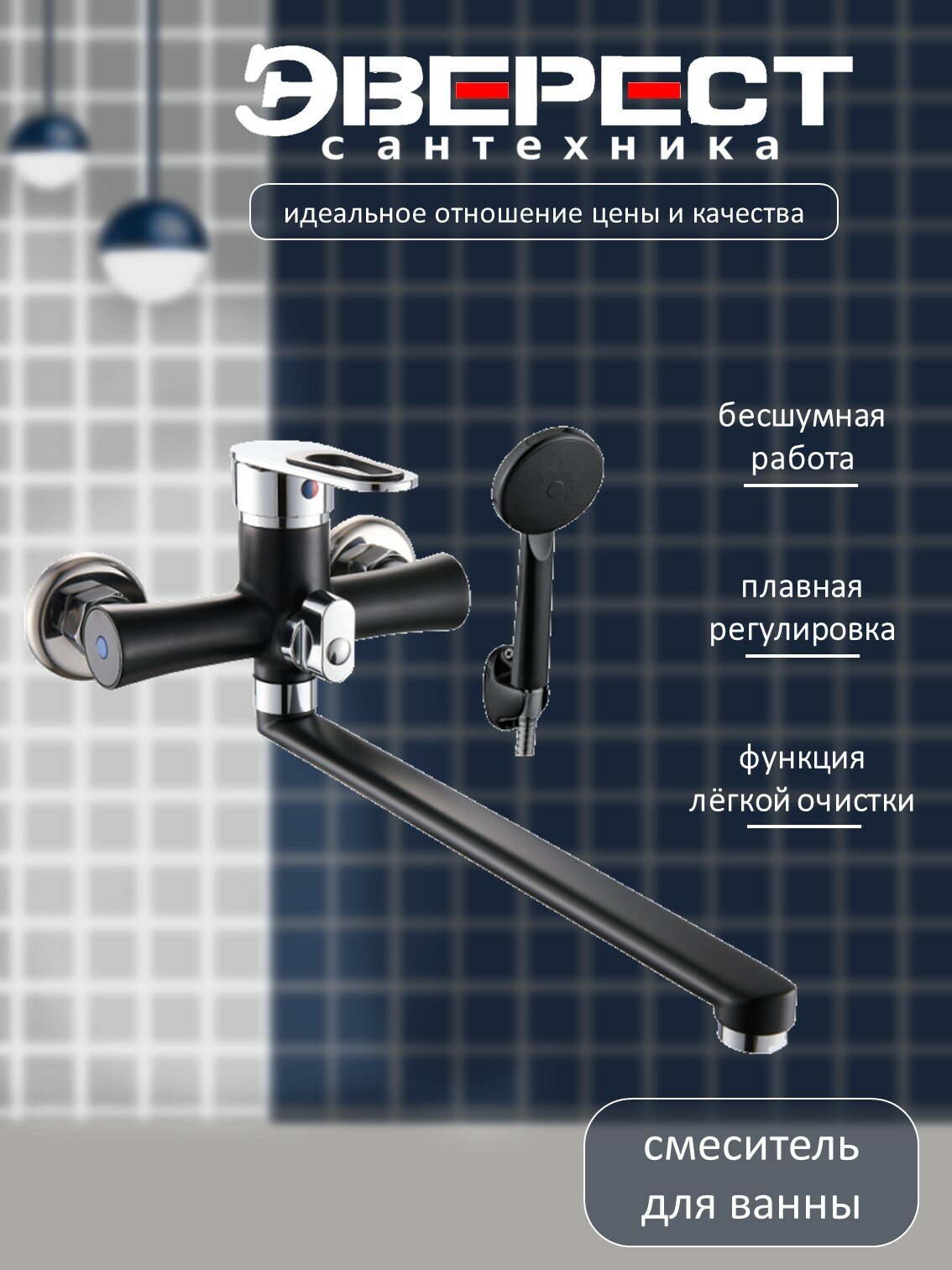 Смеситель для ванны с душем с длинным изливом, кран в ванну Эверест