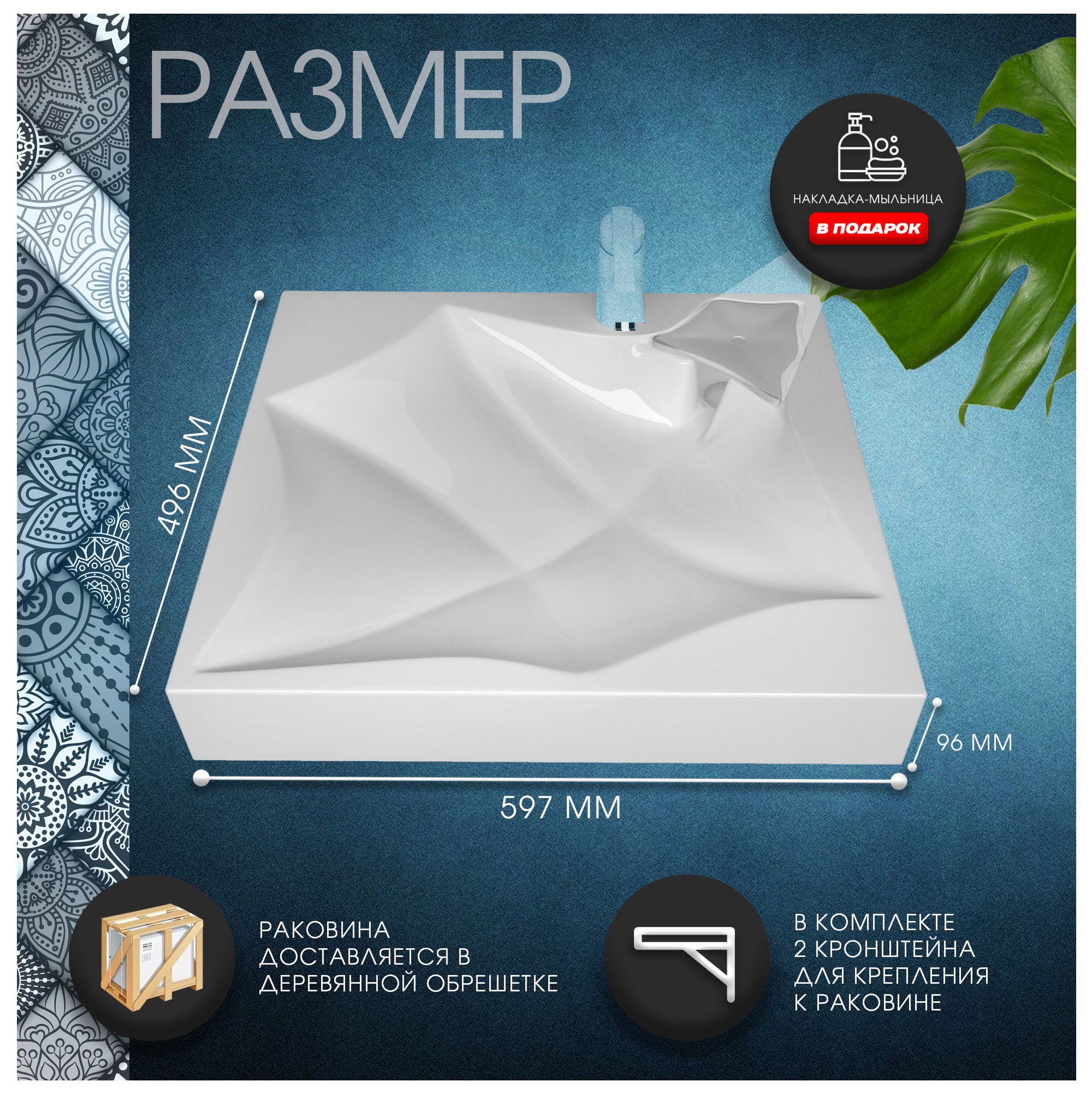Раковина над стиральной машиной Элиста 60, белая, подвесная, 60х50 информация: