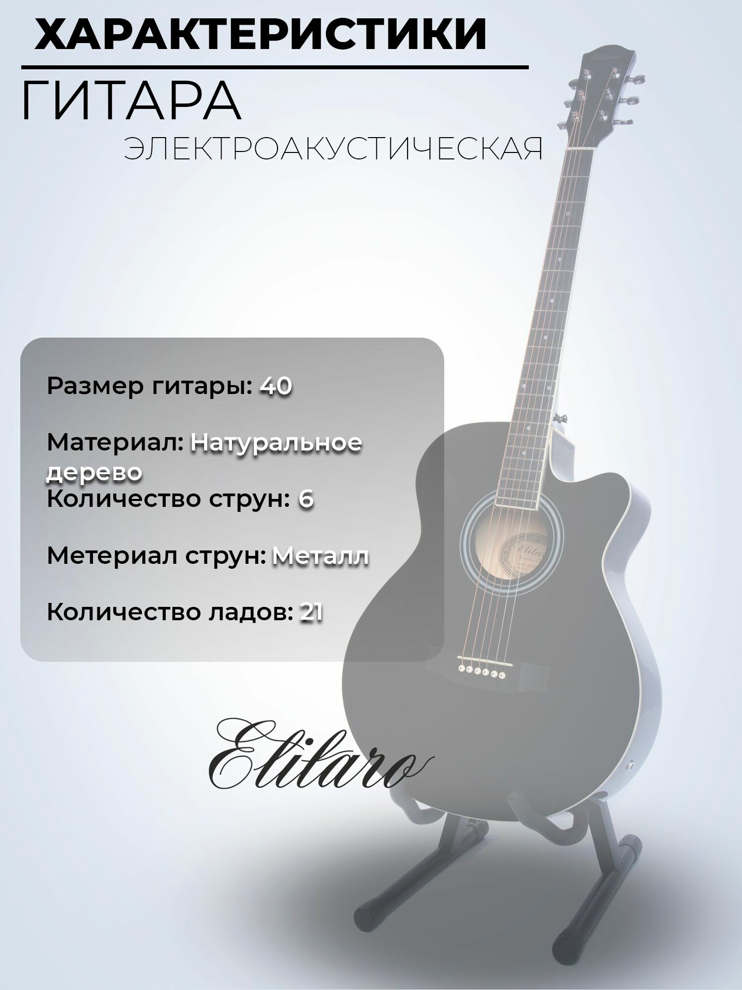 10 цен на Гитара электроакустическая 40" Чёрная Elitaro E4050 EQ BK со звукоснимателем (Инструмент для начинающих)