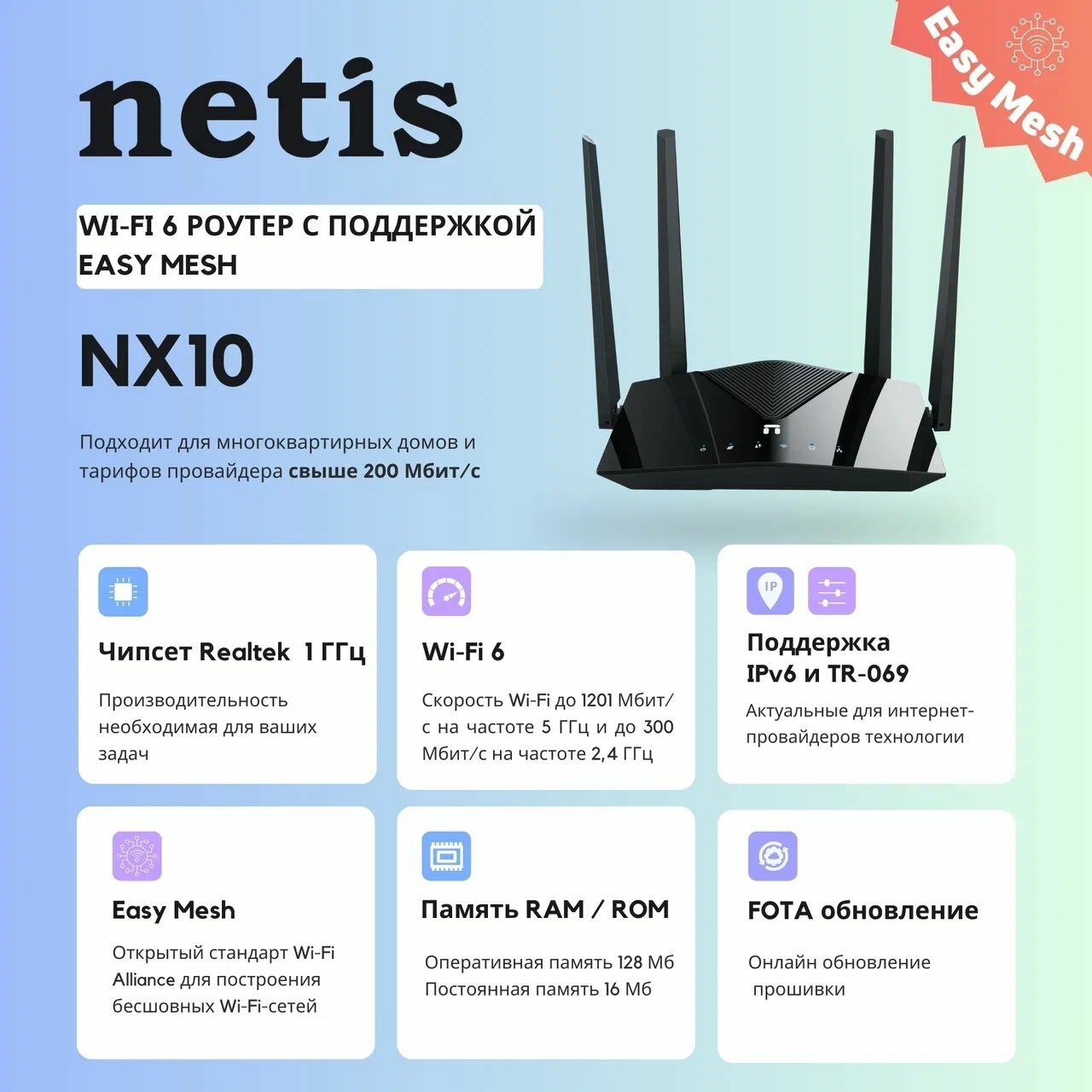 Роутер netis NX10 Wi-Fi 6 Гигабитный Двухдиапазонный с поддержкой Easy Mesh информация: