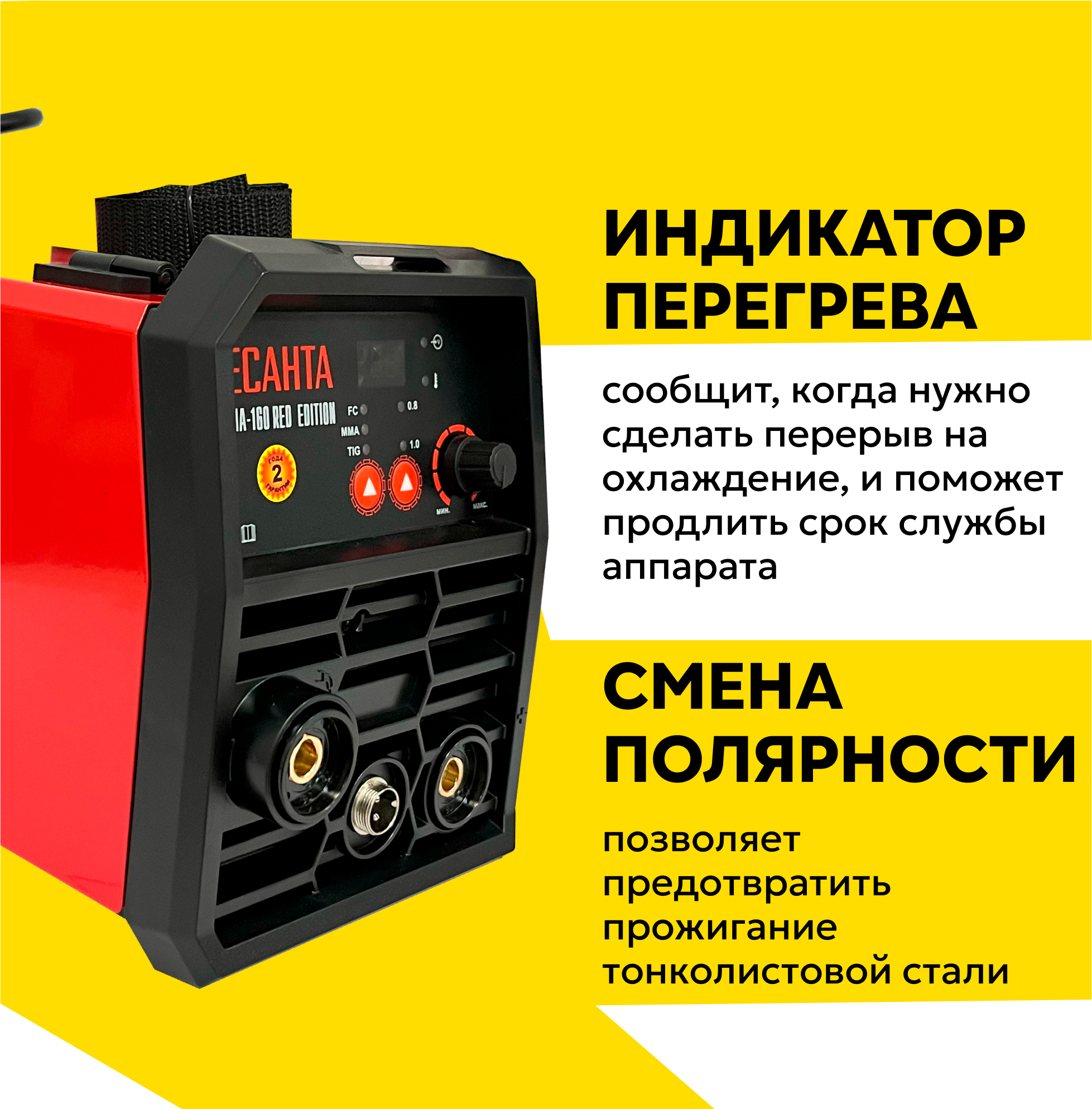 10 цен на Сварочный полуавтомат САИПА-160 Red Edition Ресанта, 160A, MMA/TIG/MIG, воздушное охлаждение