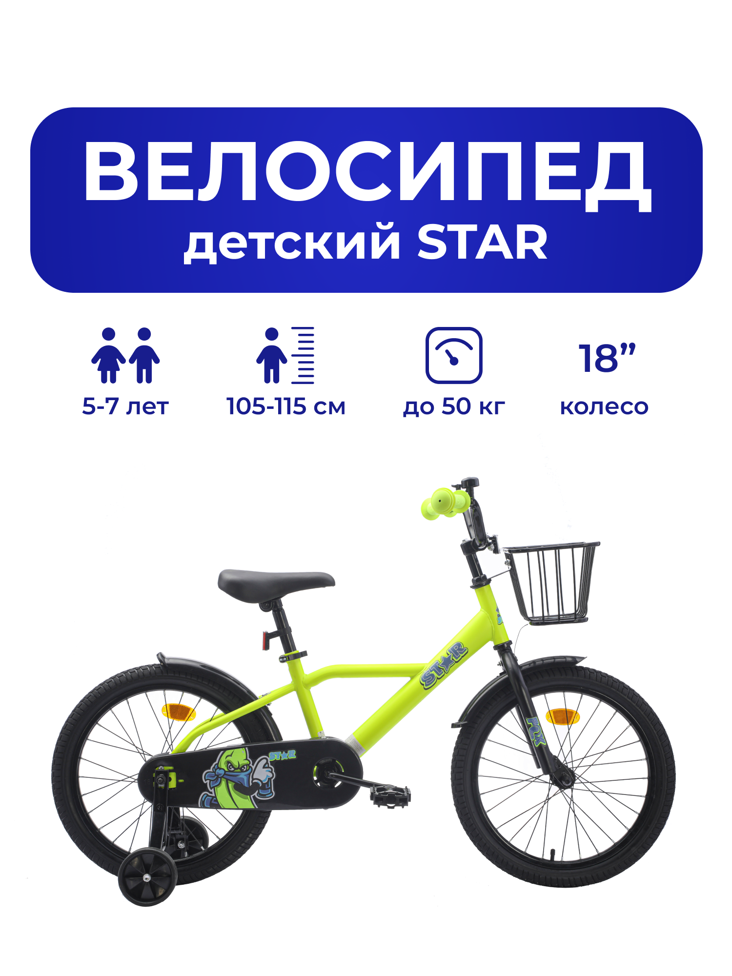 Велосипед детский 701-18" STAR / желтый / на рост: 110-130см или от 5 до 7 лет информация: