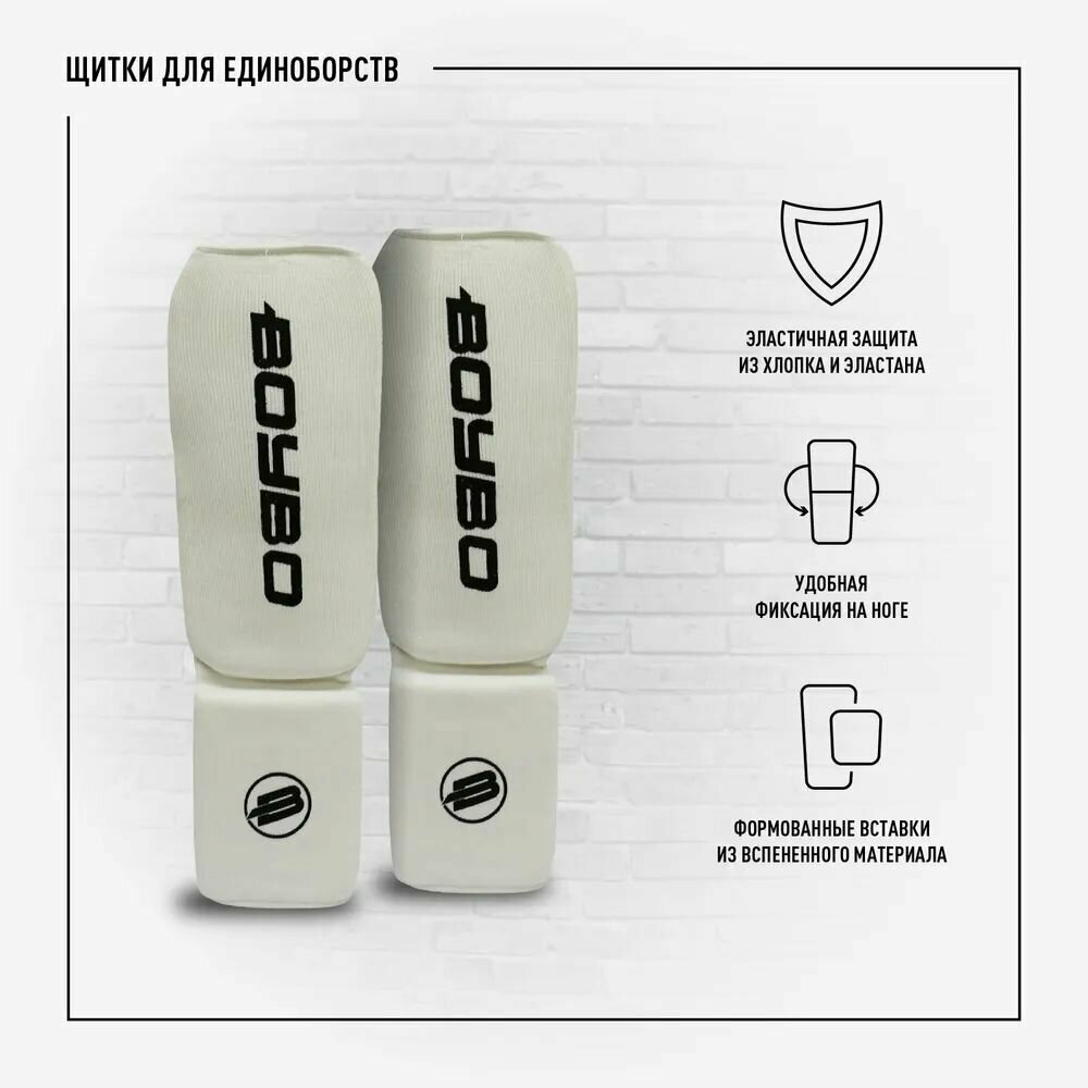 Щитки для защиты голени и стопы Boybo для единоборств, кикбоксинга, ММА, карате, защита голеностопа, белые, M информация: