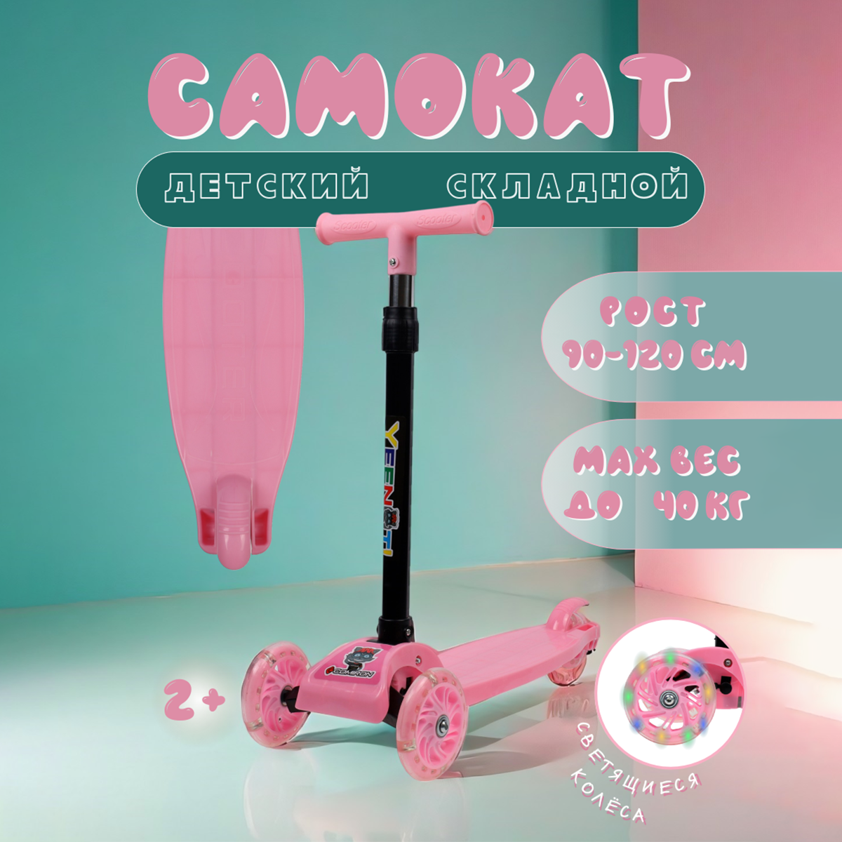 Самокат детский трехколесный COMIRON Yeenot "Радуга", регулируемая складная ручка, светящиеся колеса 110 и 75 мм, нагрузка до 40 кг, розовый / 1 шт. информация: