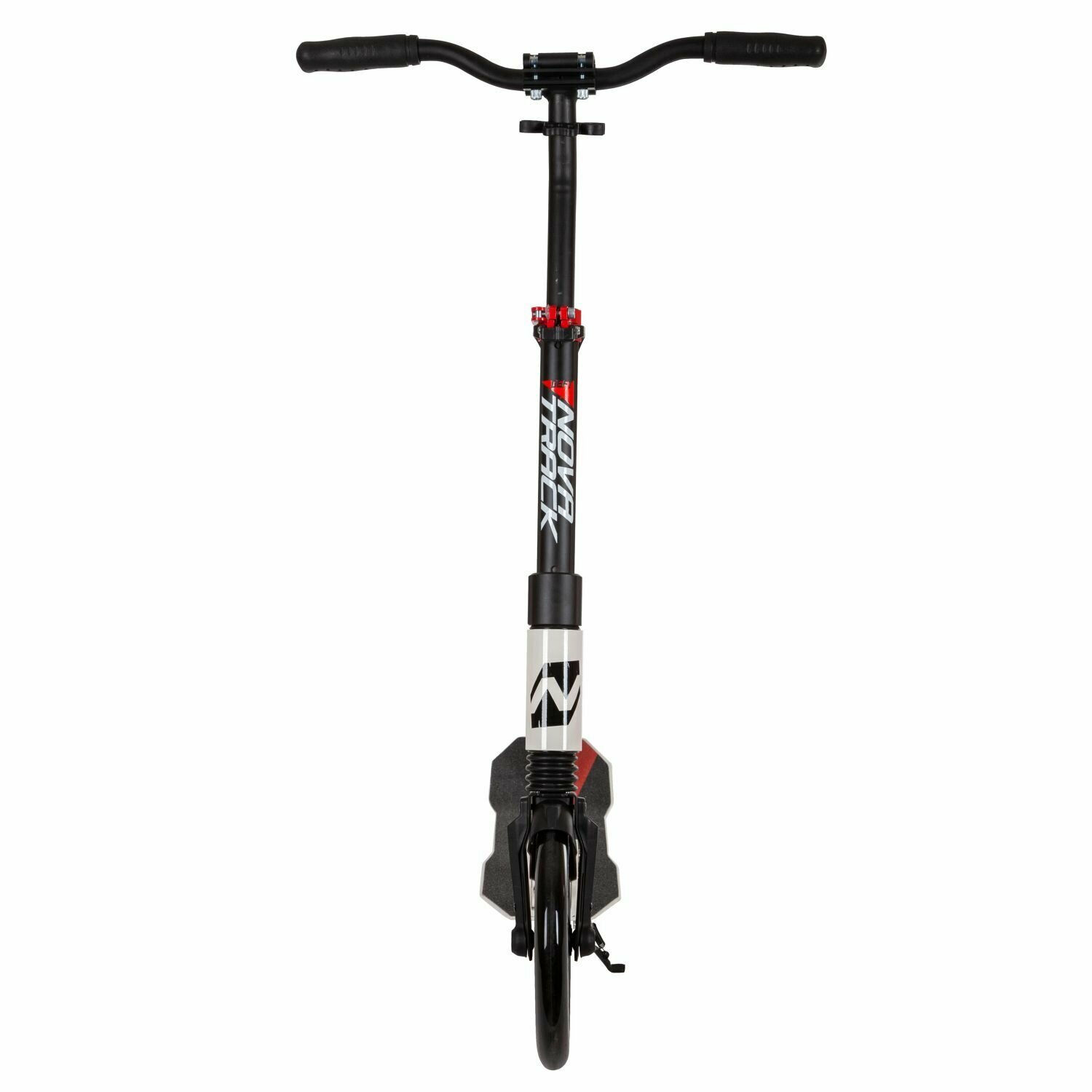 Самокат городской NOVATRACK DEFT алюм., амортизатор, колеса 230*200 мм PU, эргономичный Y-руль с фиксатором складных рукоятей, черно-белый