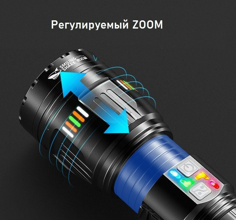 Фонарик ручной с цифровым дисплеем водонепроницаемый/телескопический зум/перезаряжаемый/бликовый фонарик