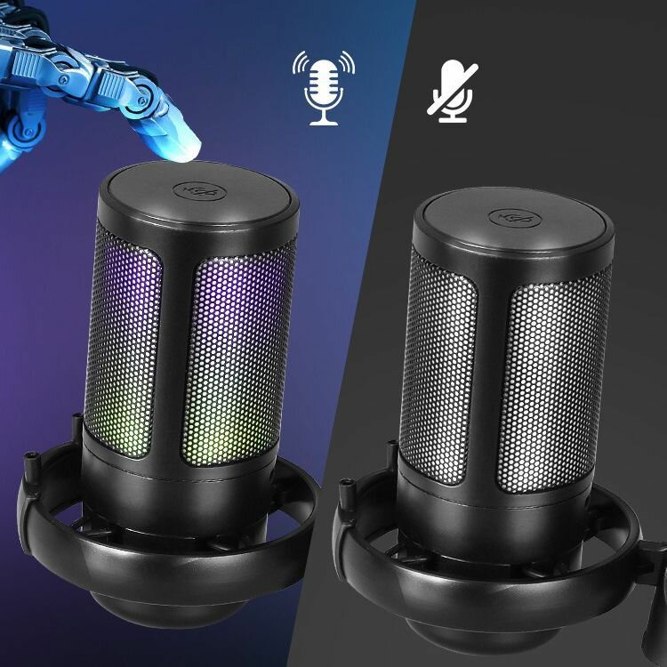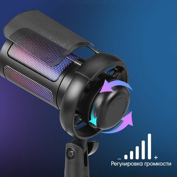Микрофон для компьютера игровой с поп-фильтром, конденсаторный, с RGB подсветкой, микрофон игровой, для стриминга, usb микрофон
